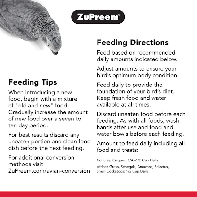 ZuPreem AvianMaintenance Natural Bird Diet for Parrots & Conures