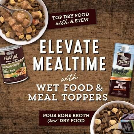 Castor & Pollux Pristine Grain Free Free-Range Chicken Bone Broth Meal Topper Wet Dog Food. 8.4 oz.. Case of 24
