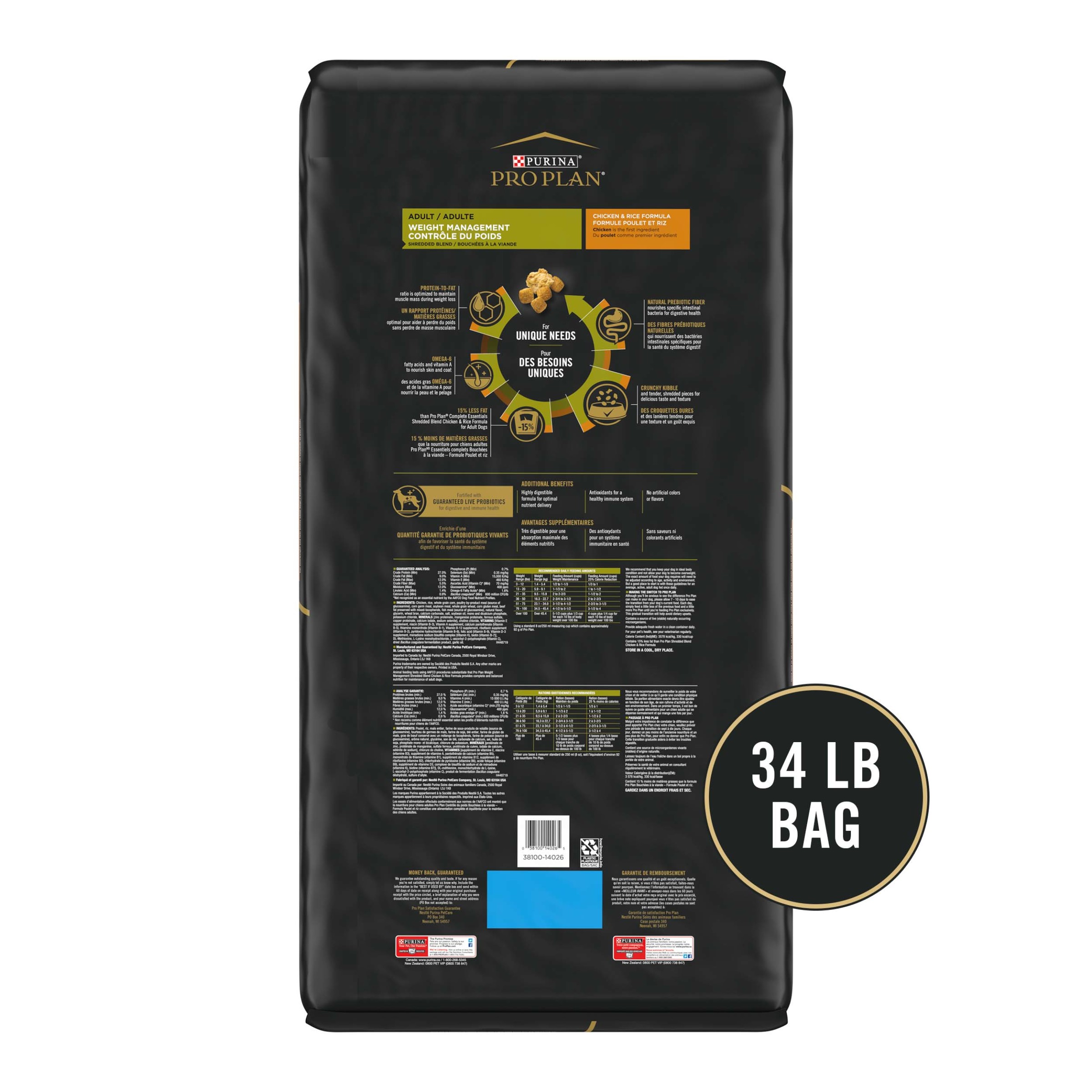 Purina Pro Plan Weight Management for Adult Dogs Chicken Rice. 34 lb Bag