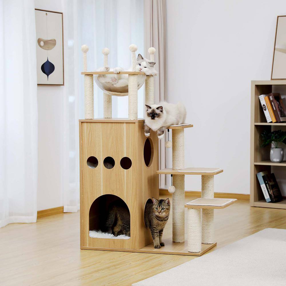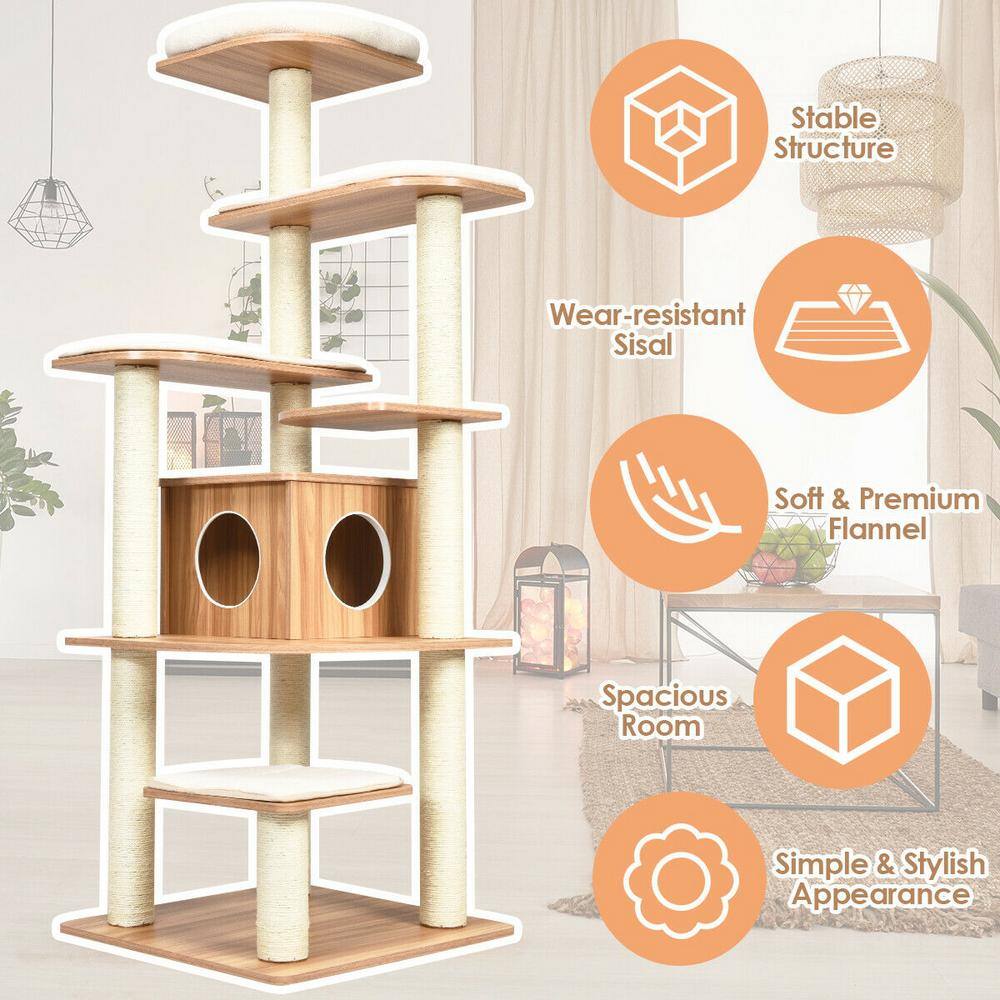 ANGELES HOME M74-8PS31 69 in. Tall Brown Sleep and Play Cat Tree