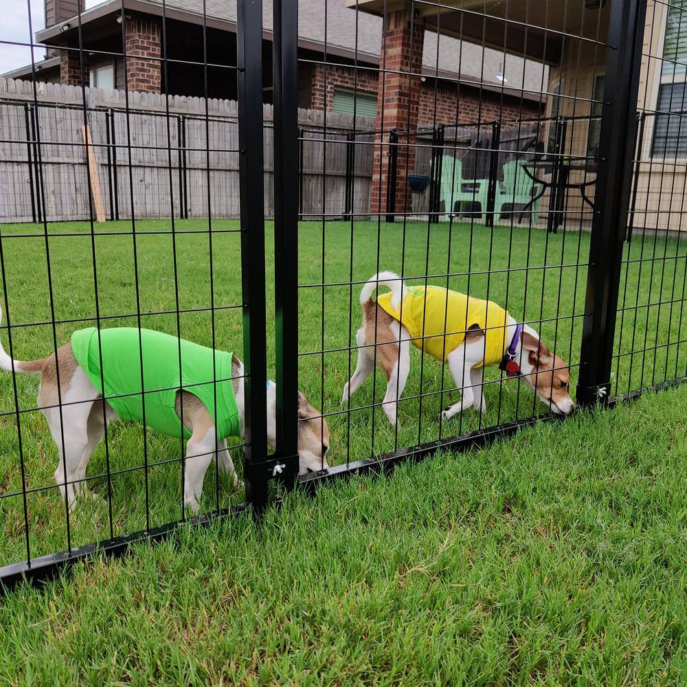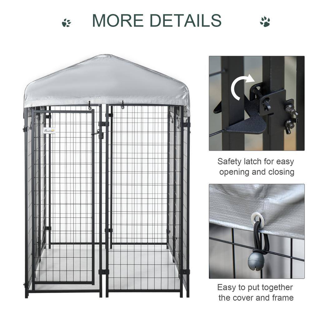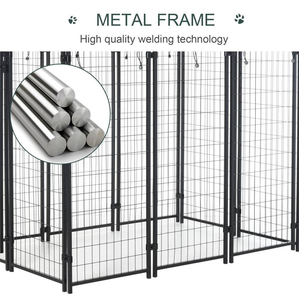 PawHut D02-092 0.0005-Acre Black Steel In-Ground Dog Fence Dog Kennel House with Canopy and 2-Bowls