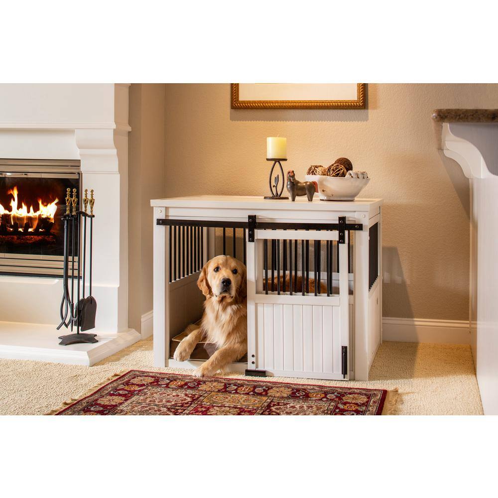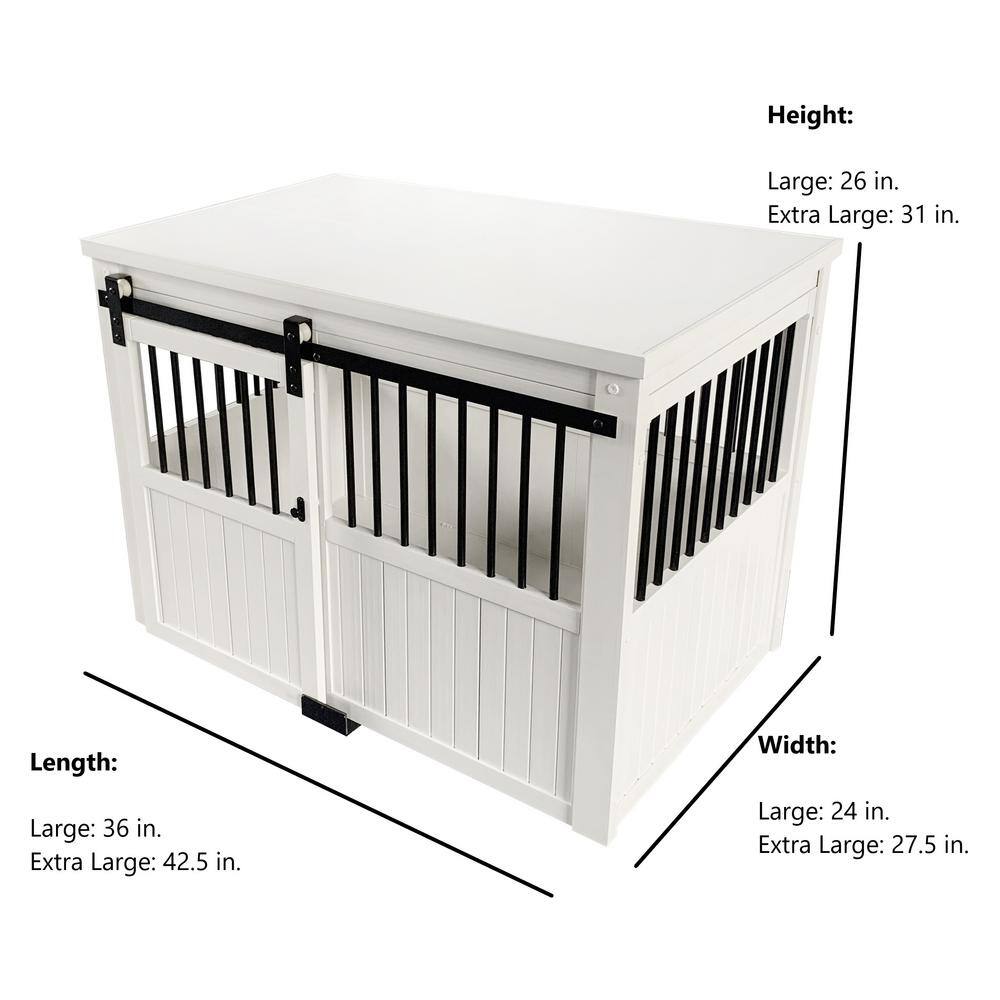 New Age Pet EHDBC15-04XL Homestead ECOFLEX Antique White Sliding Barn Door Dog Crate Extra Large