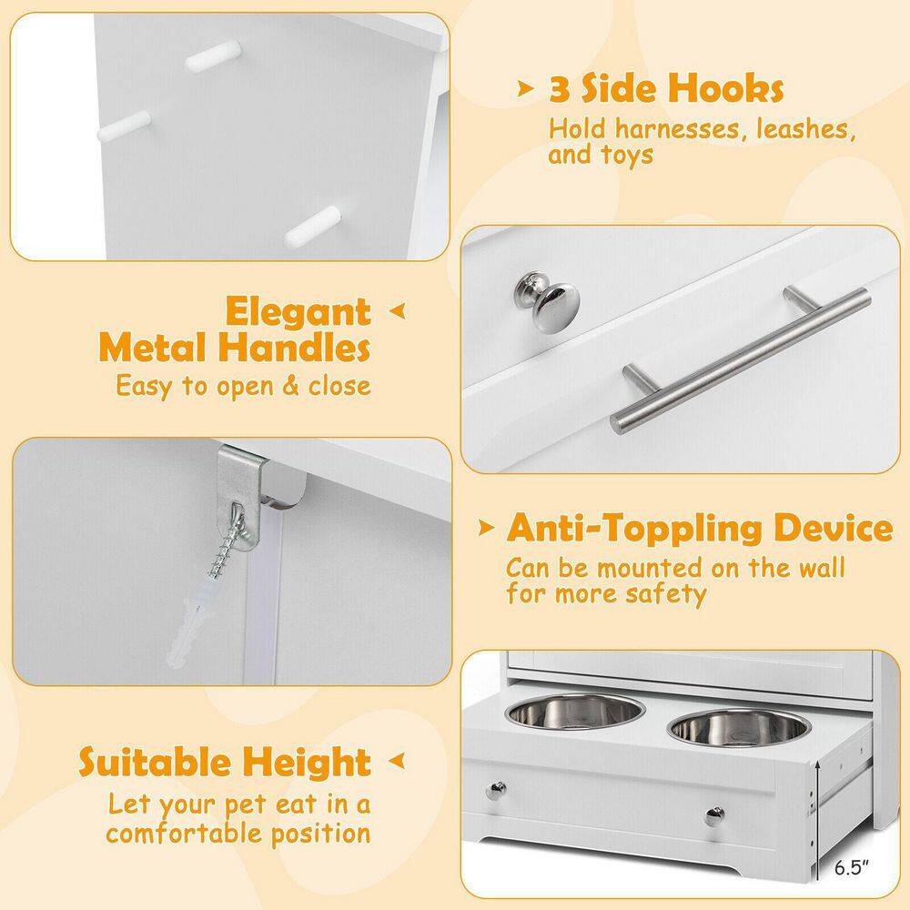 ANGELES HOME 8CK-10010PVWH 2-Cup Wood Pet Feeder Station with Stainless Steel Bowl in White