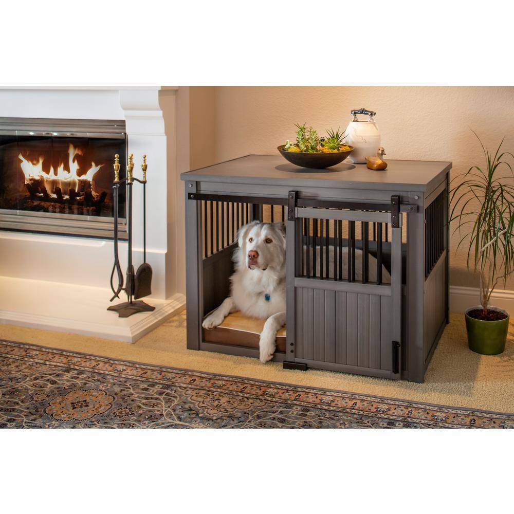 New Age Pet EHDBC15-05L Homestead ECOFLEX Grey Sliding Barn Door Dog Crate Large