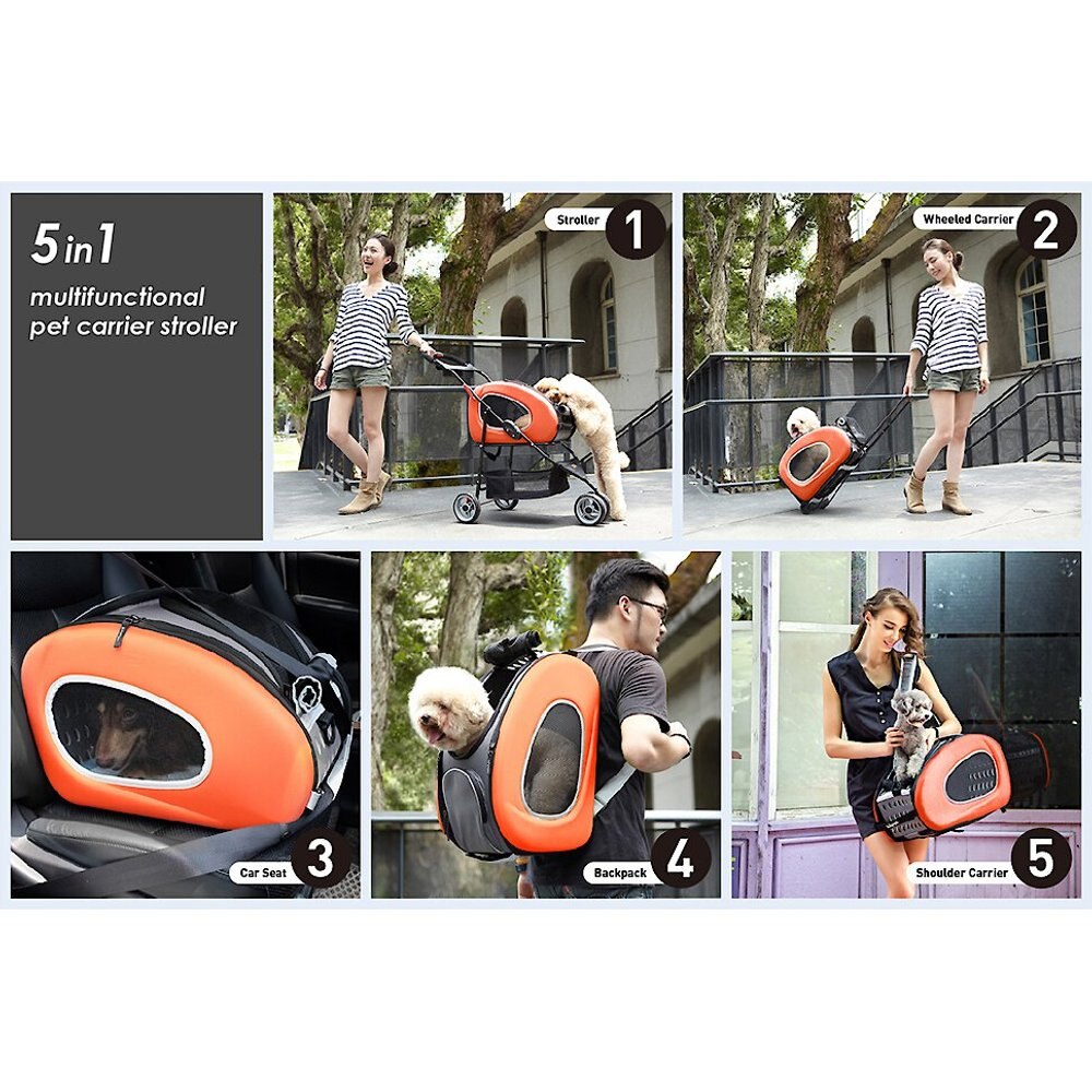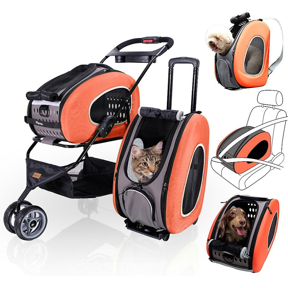 Ibiyaya 5-in-1 Combo EVA Airline-Approved Dog Cat Carrier and Stroller - Orange