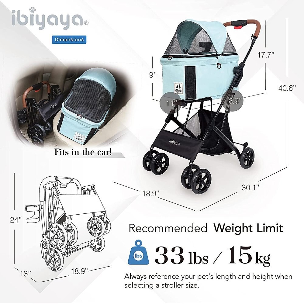 Ibiyaya Travois Tri-fold Pet Travel System Cat and Dog Stroller Small - Spearmint