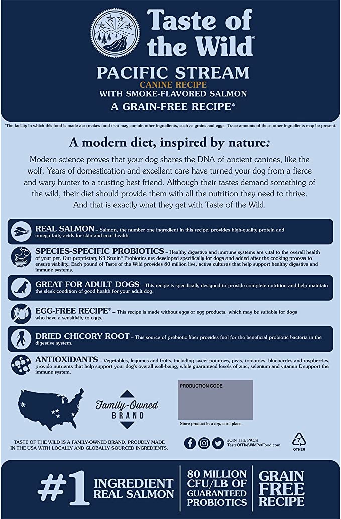 Taste of the Wild Pacific Stream Grain-Free Dry Dog Food with Smoke-Flavored Salmon 28lb