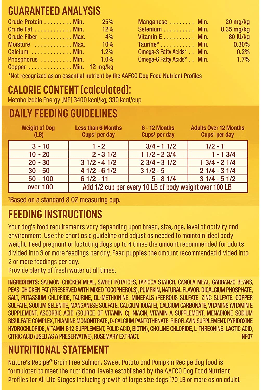 Nature-s Recipe Grain Free Dry Dog Food. Salmon. Sweet Potato & Pumpkin Recipe. 24 Pound Bag. Easy to Digest