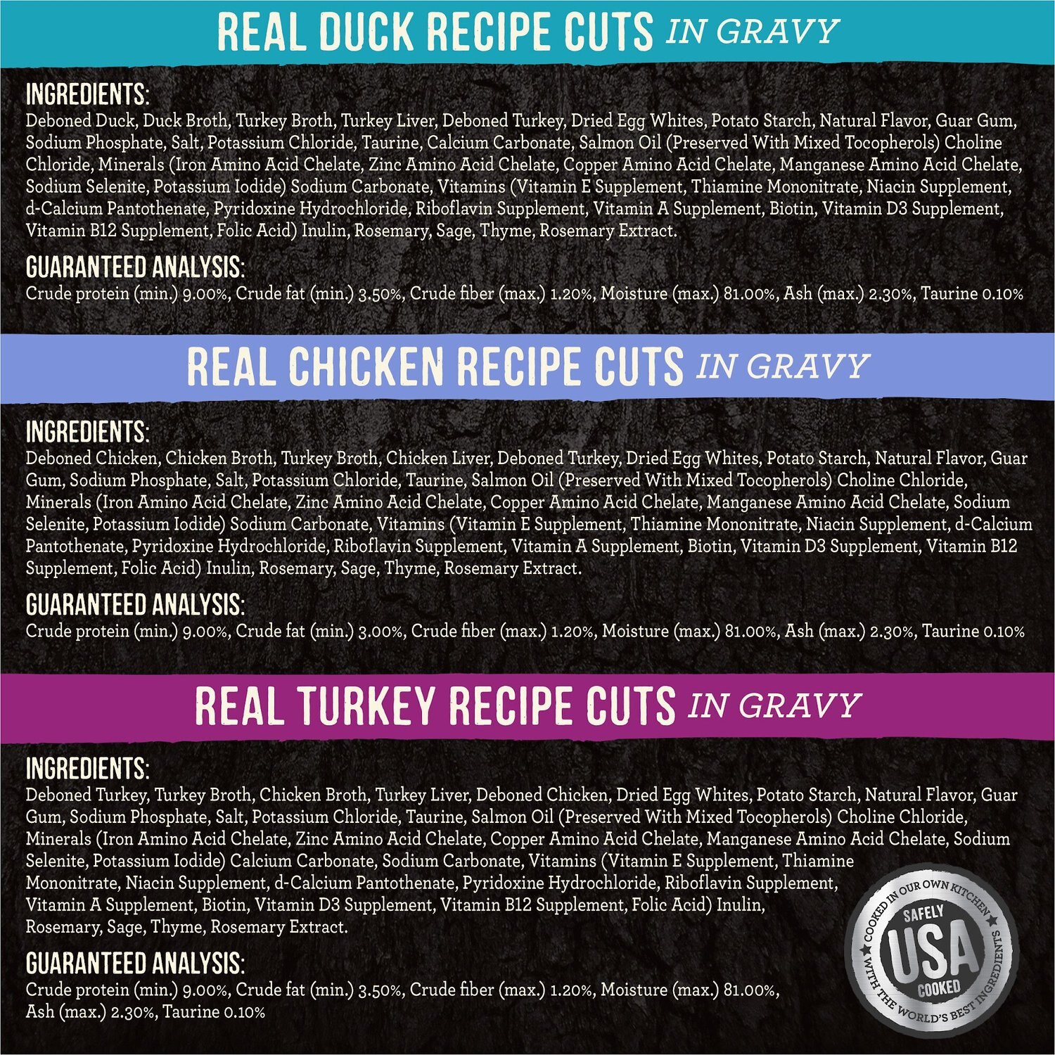 Merrick Backcountry Grain-Free Morsels in Gravy Real Duck. Chicken. Turkey Recipe Cuts Variety Pack Cat Food Pouches
