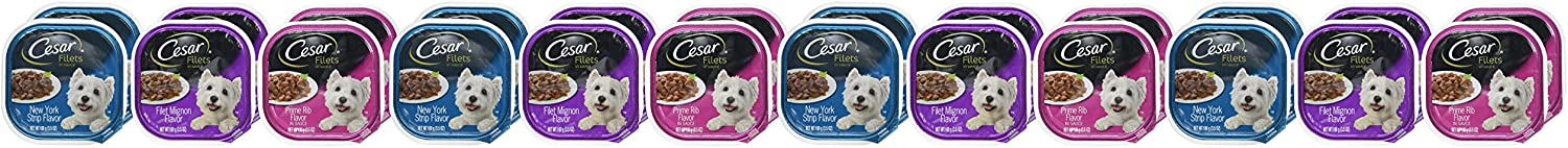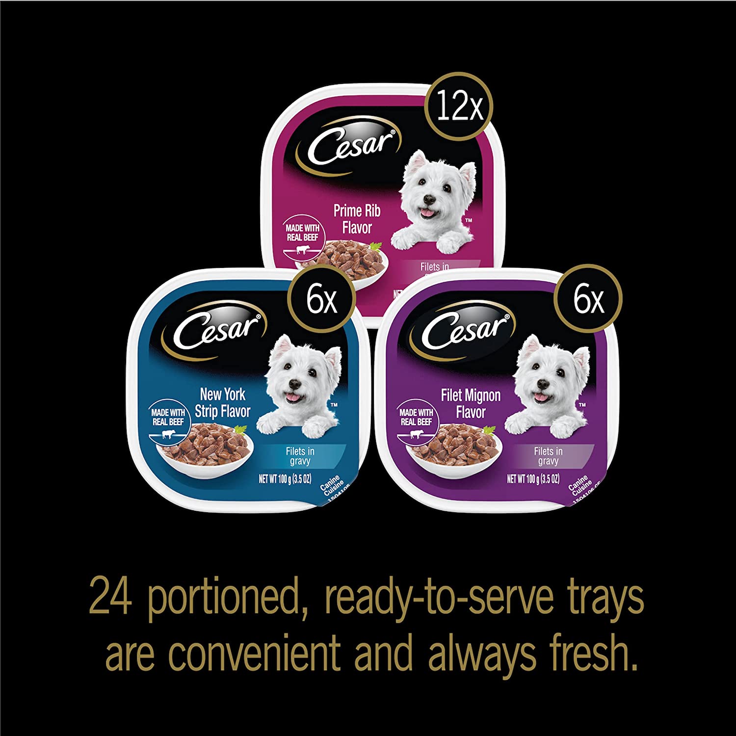 CESAR Adult Soft Wet Dog Food Filets in Gravy Variety Pack. Filet Mignon. New York Strip and Prime Rib Flavors. (24) 3.5 oz. Trays