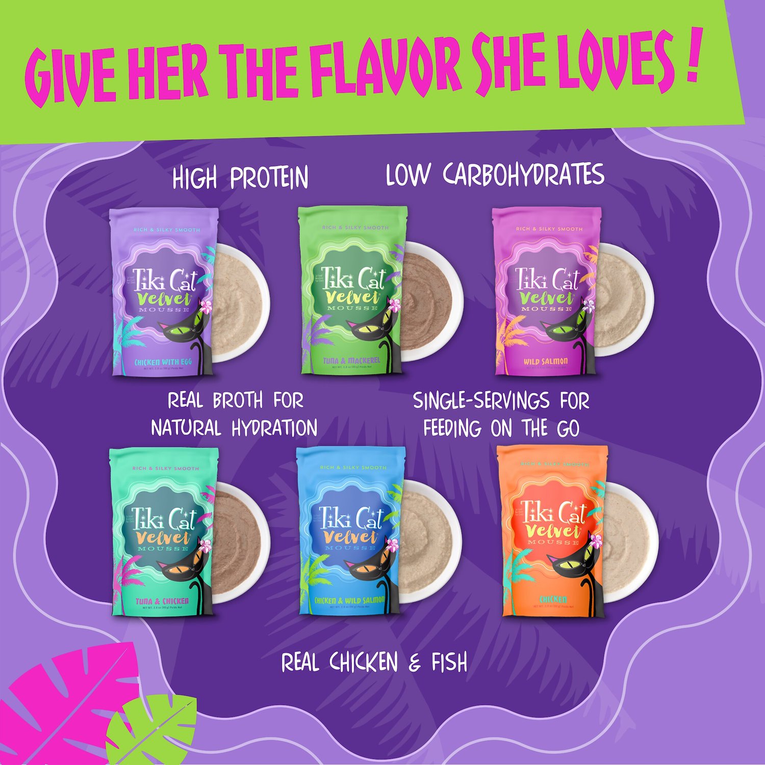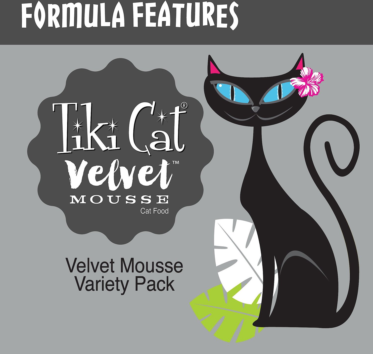 Tiki Cat Velvet Mousse Variety Pack Grain-Free Wet Cat Food. 2.8-oz pouch. case of 12