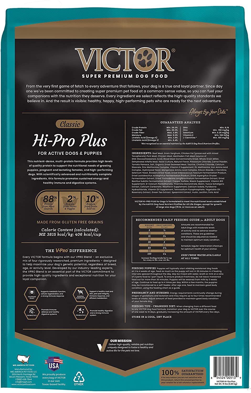 VICTOR Super Premium Dog Food Hi-Pro Plus Dry Dog Food 40 lb 30% Protein. Gluten Free for High Energy and Active Dogs & Puppies