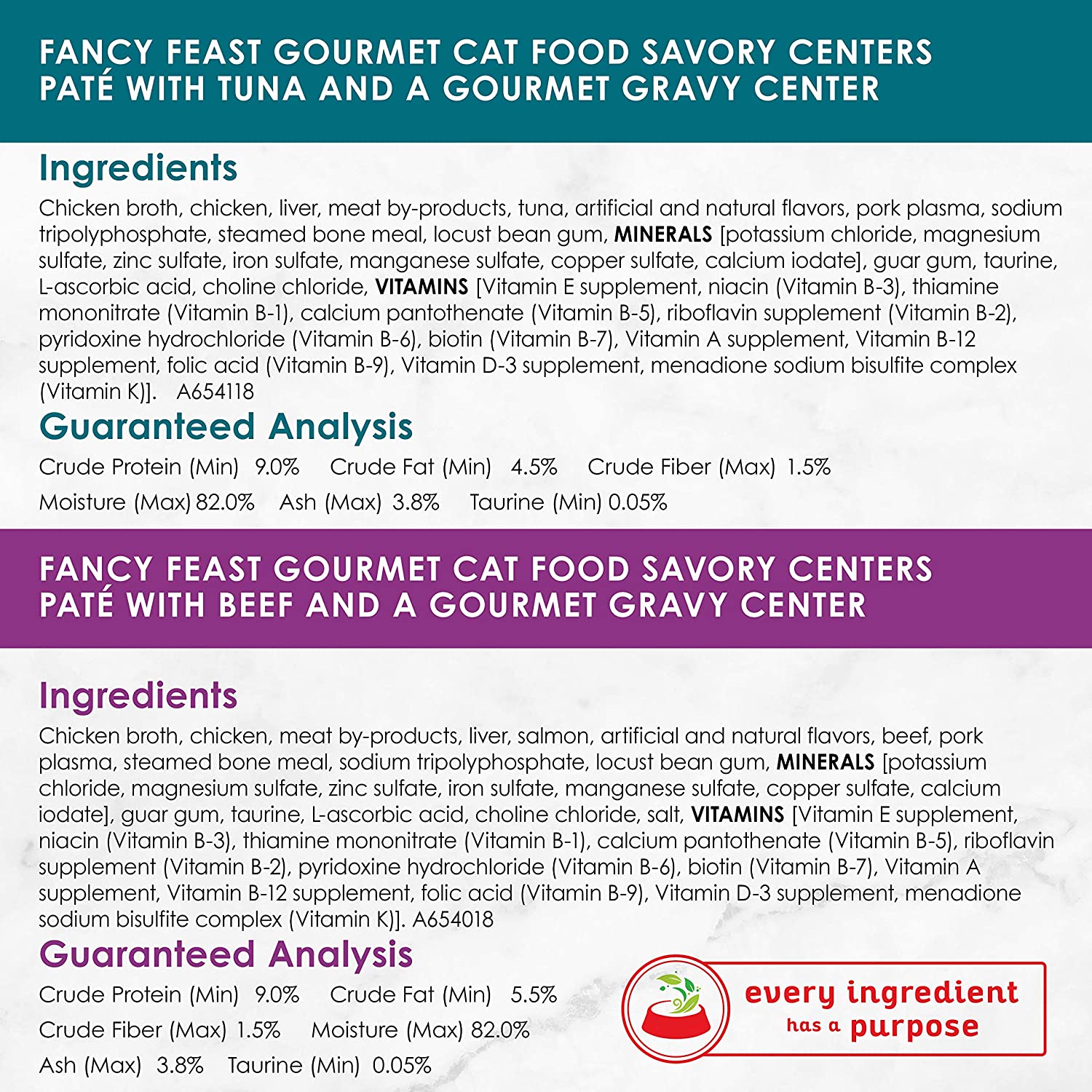 Purina Fancy Feast Pate Wet Cat Food Variety Pack. Savory Centers Pate With a Gravy Center. 3-oz. case of 24
