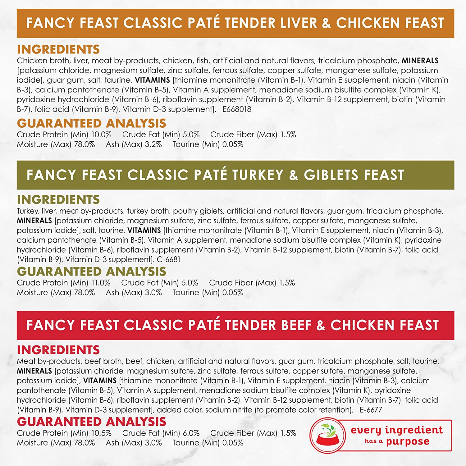 Purina Fancy Feast Grain Free Pate Wet Cat Food Variety Pack. Poultry & Beef Collection - (30) 3 oz. Cans