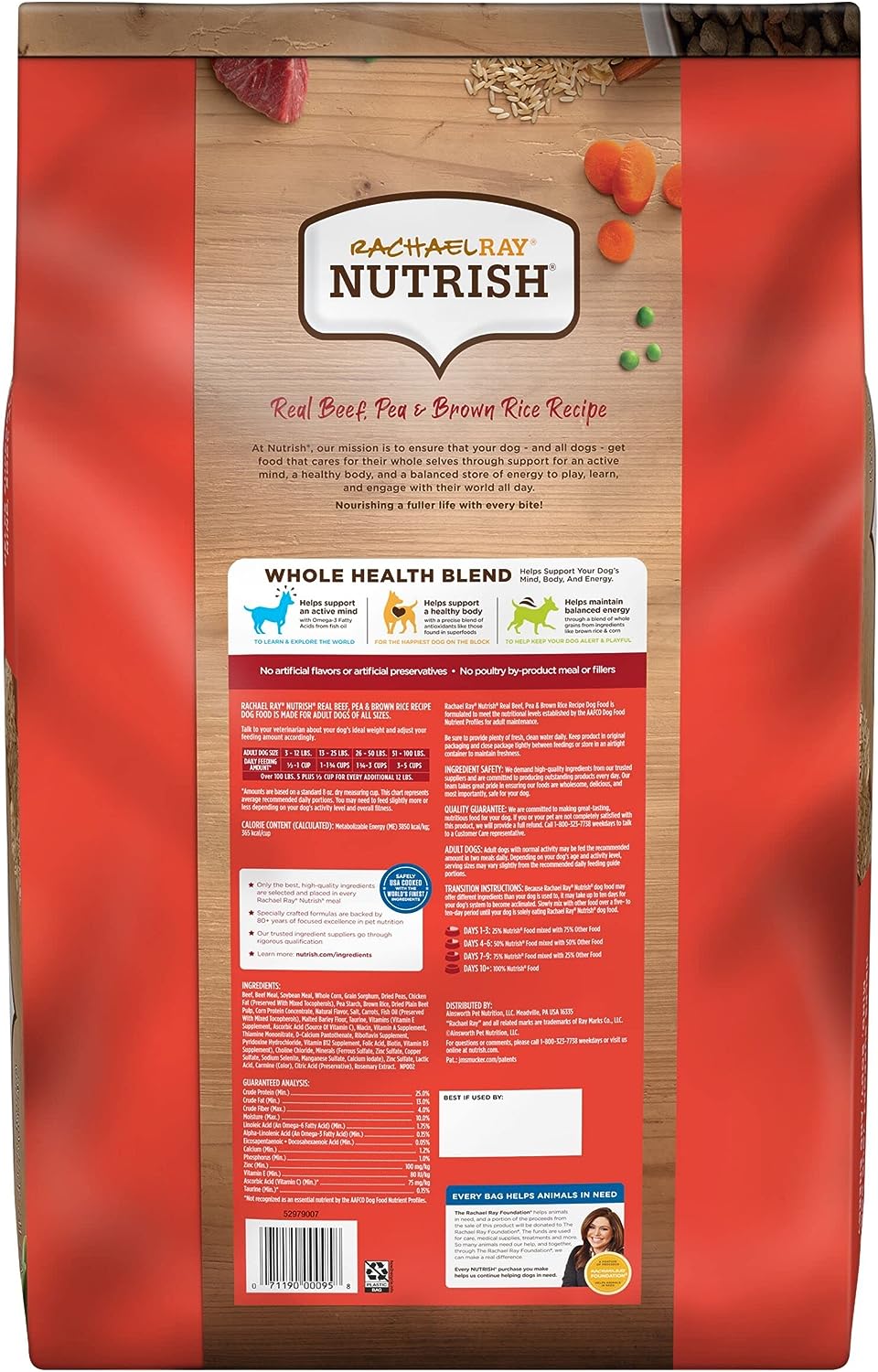 Rachael Ray Nutrish Natural Real Beef. Pea & Brown Rice Recipe Dry Dog Food. 40 lbs.