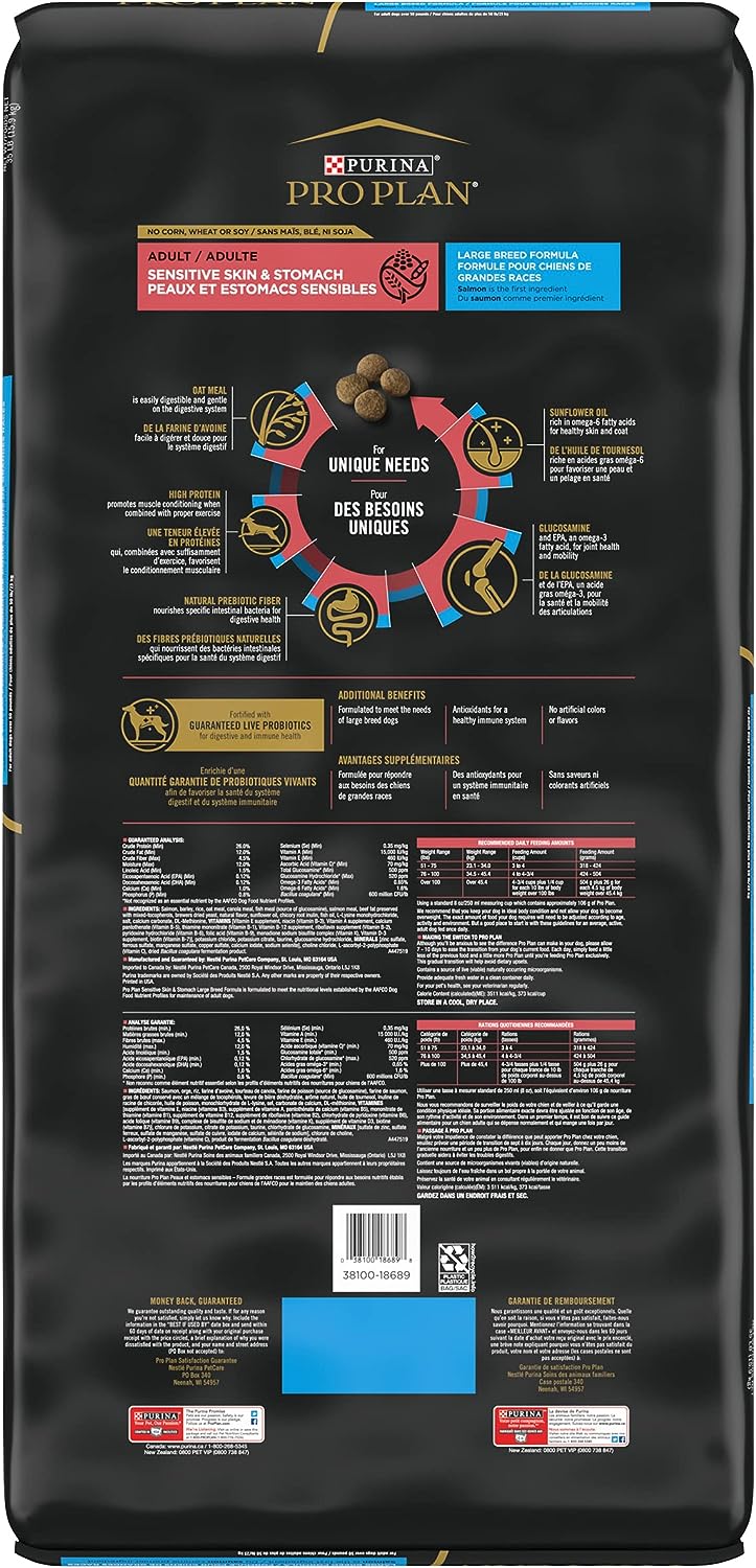 Purina Pro Plan Specialized Sensitive Skin & Stomach With Probiotics Large Breed Dry Dog Food. 35 lbs.