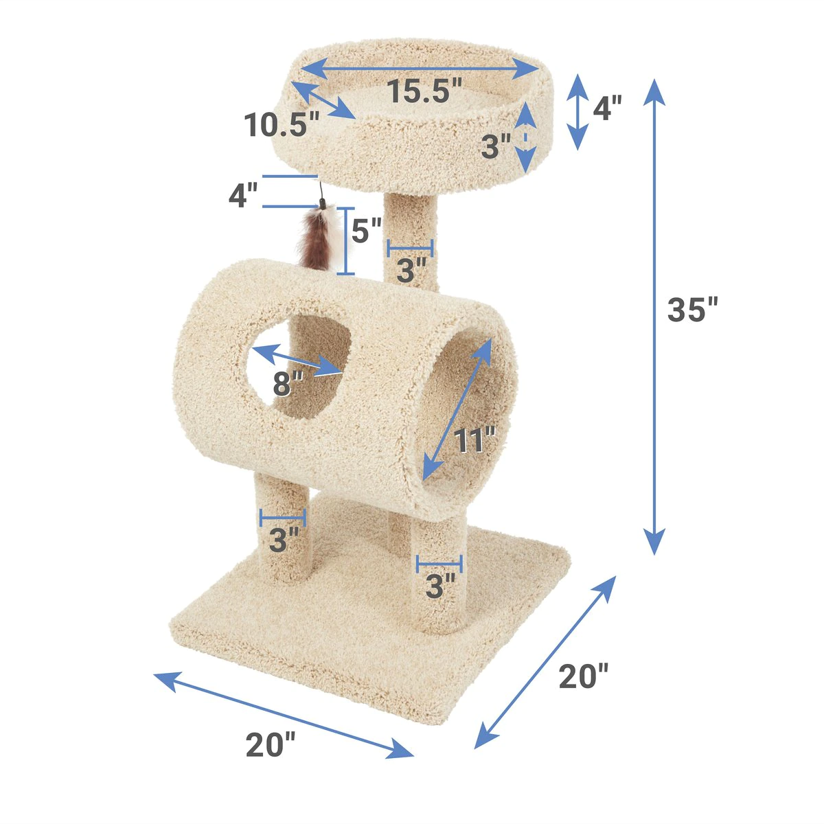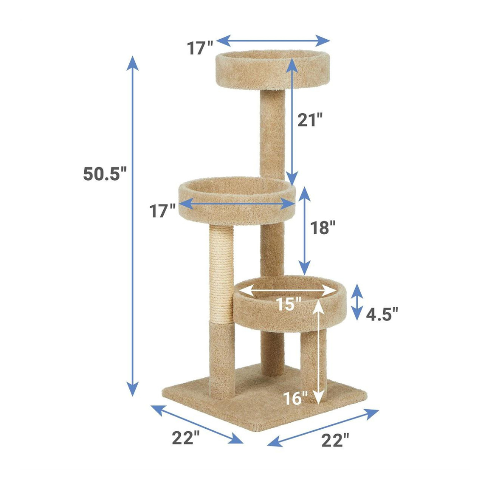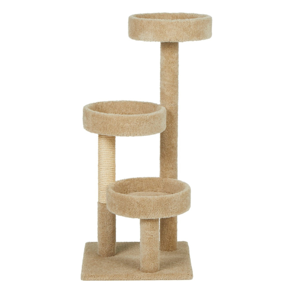 Frisco 35-In Real Carpet Cat Tree With Tunnel. Beige
