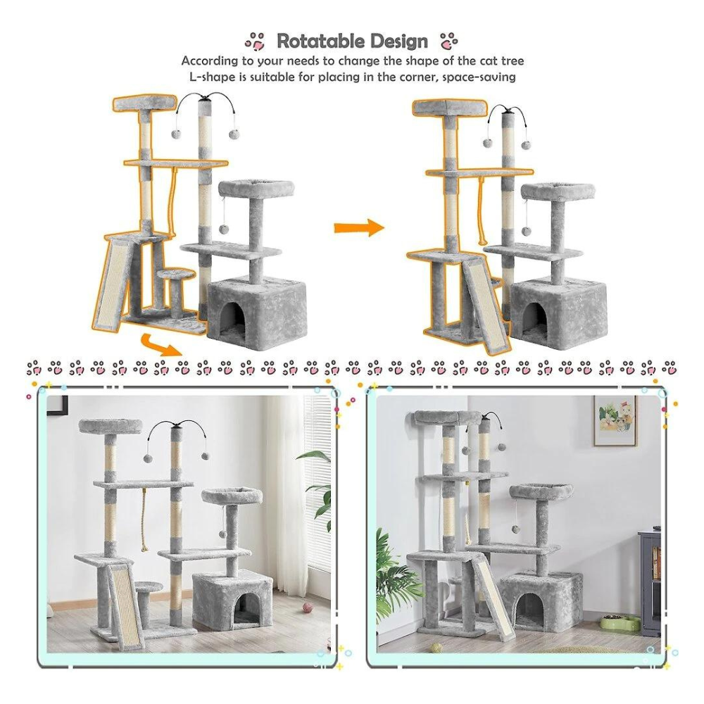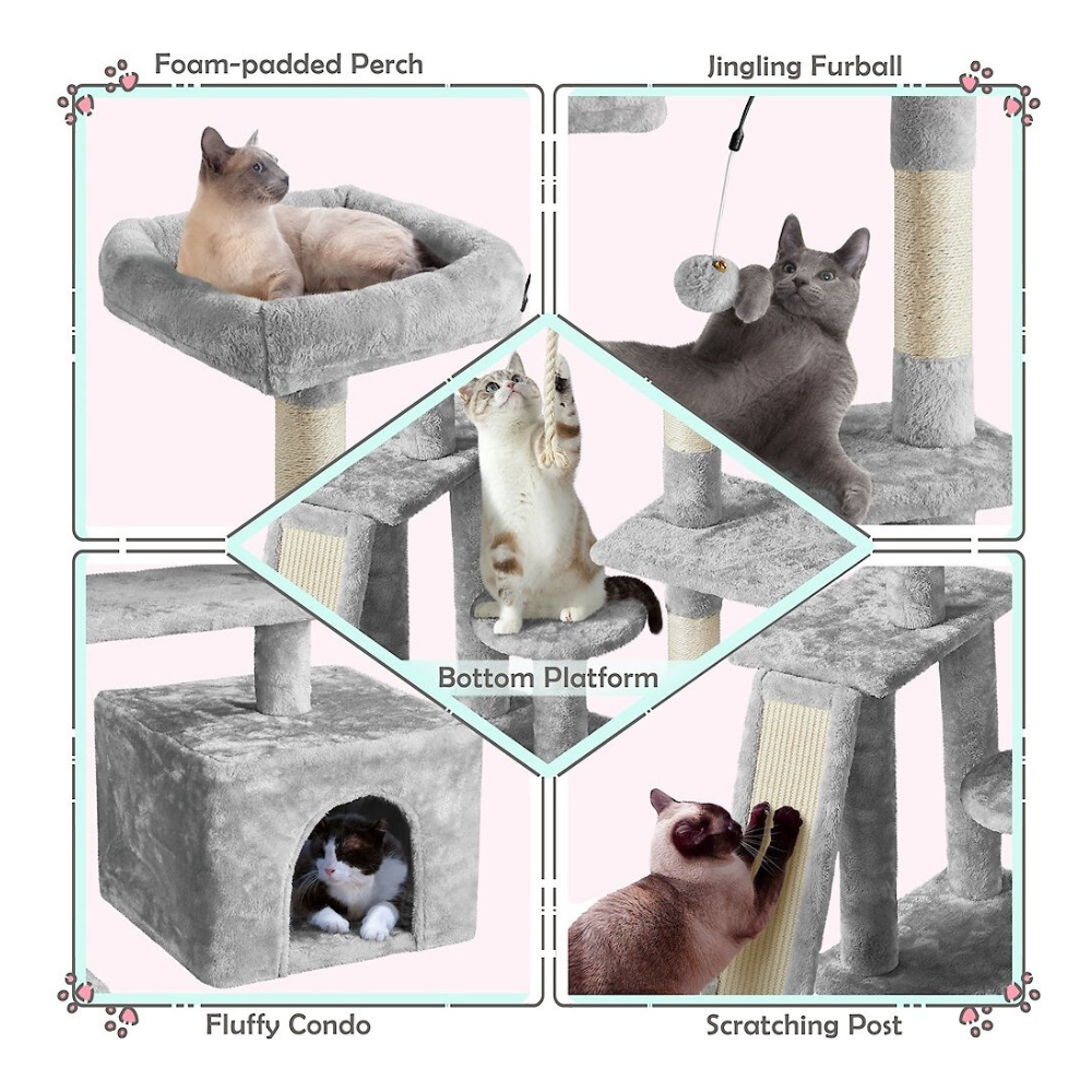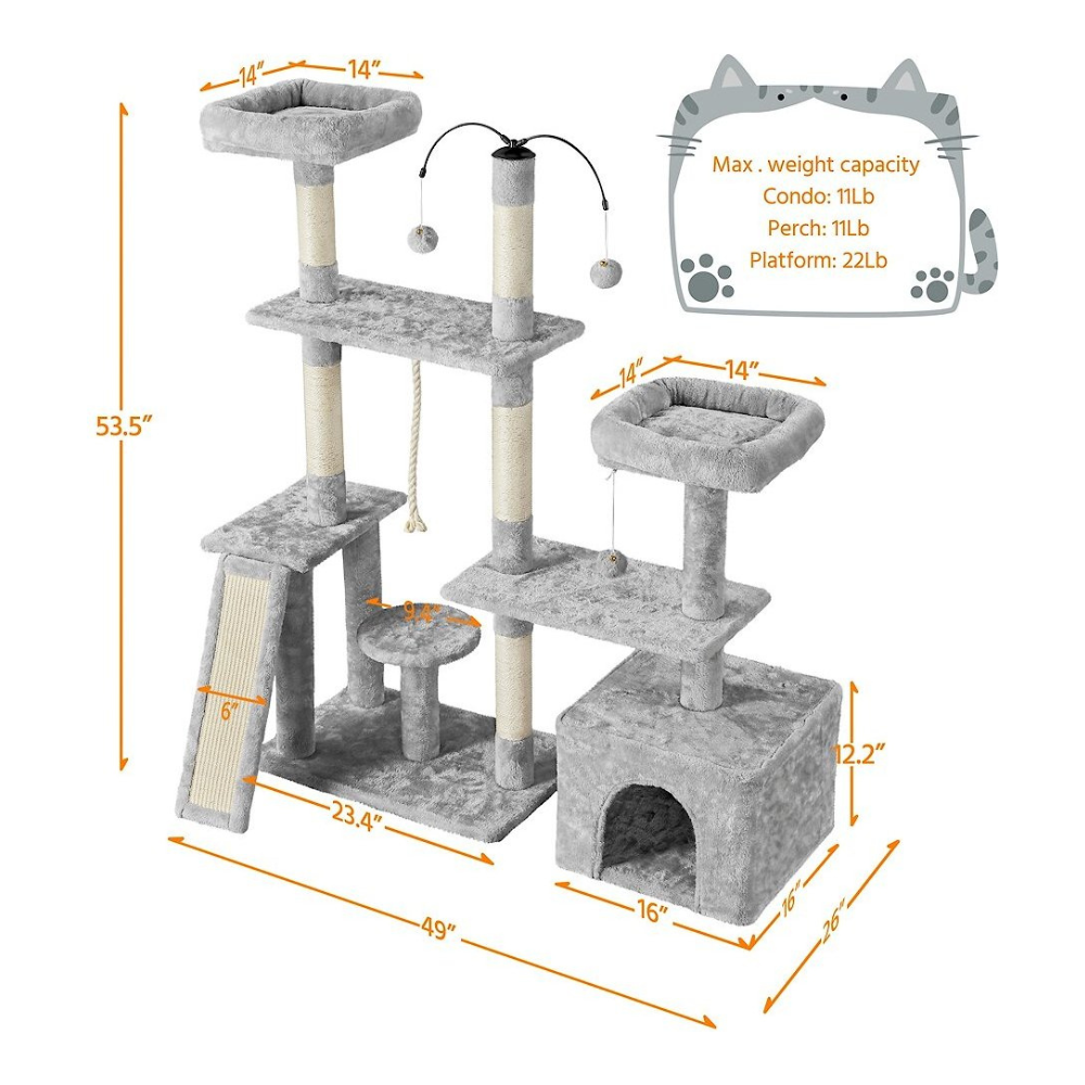 Yaheetech Activity Town 53.5-in Plush Cat Tree. Light Gray