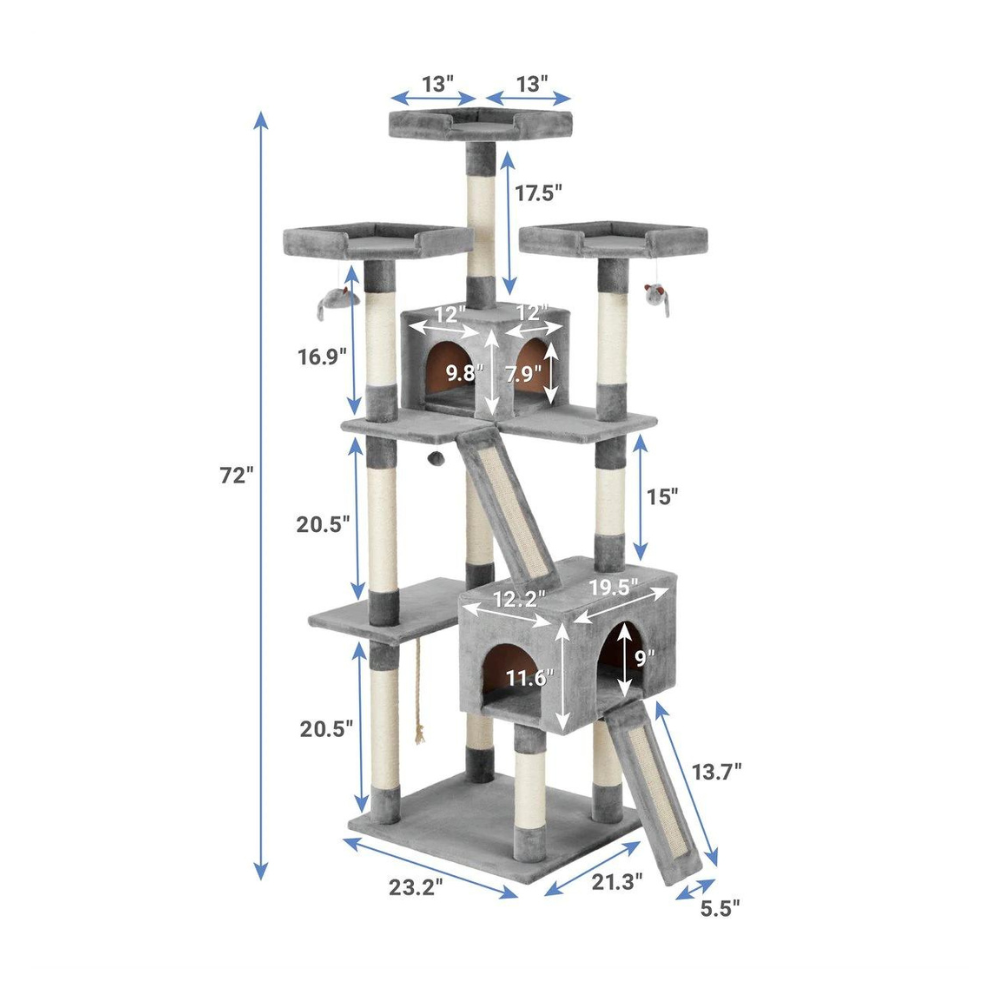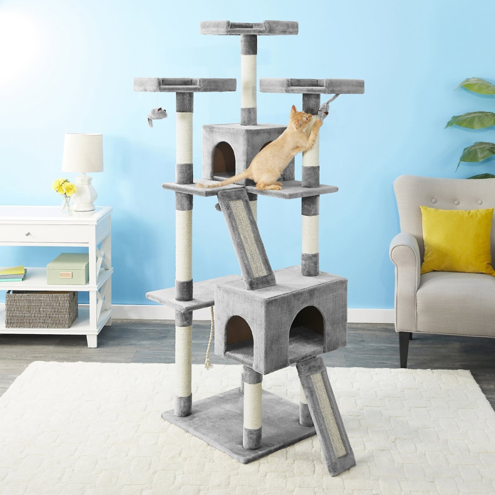 Frisco 72-in Faux Fur Cat Tree & Condo. Gray