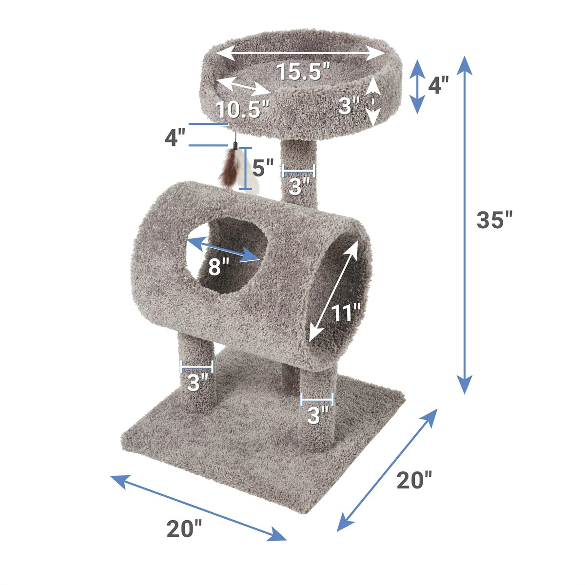Frisco 35-In Real Carpet Cat Tree With Tunnel. Gray