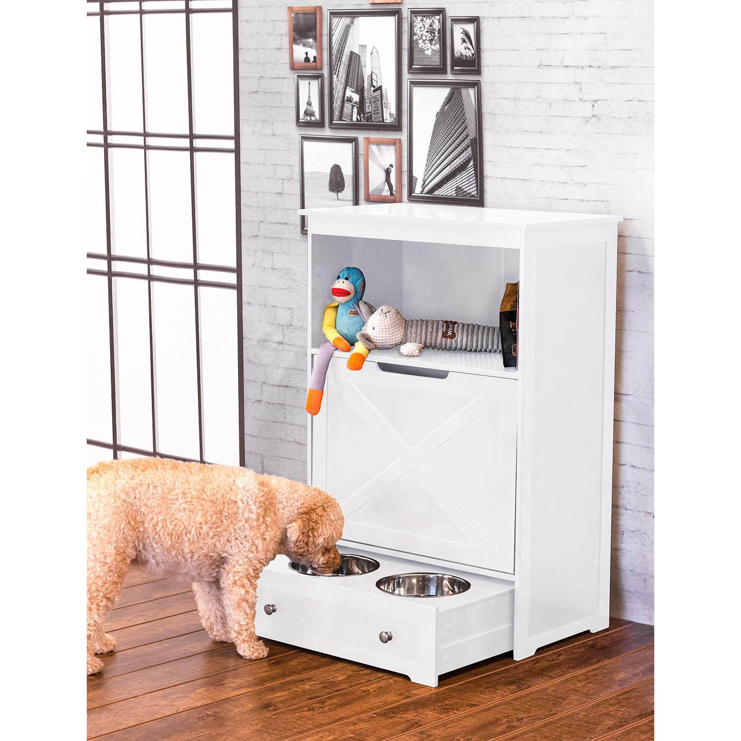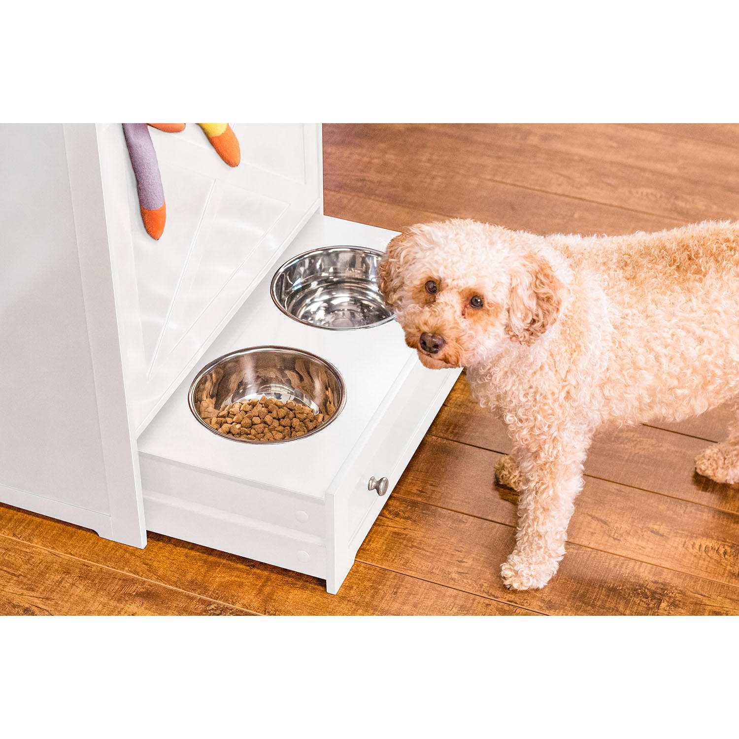 Zoovilla Windsor Pet Feeder with storage – dog bowl stand (White)