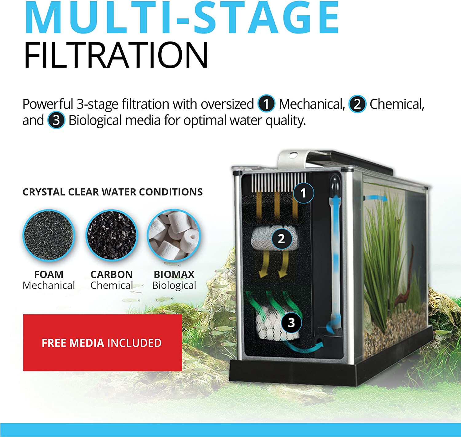 Marineland Portrait Glass LED Aquarium Kit. 5 Gallons. Hidden Filtration