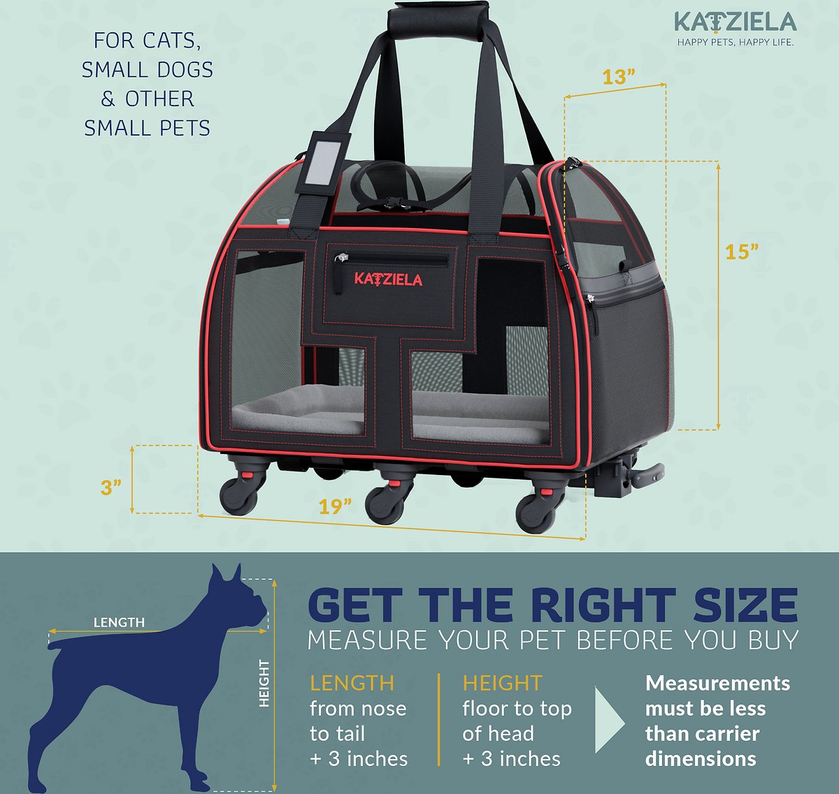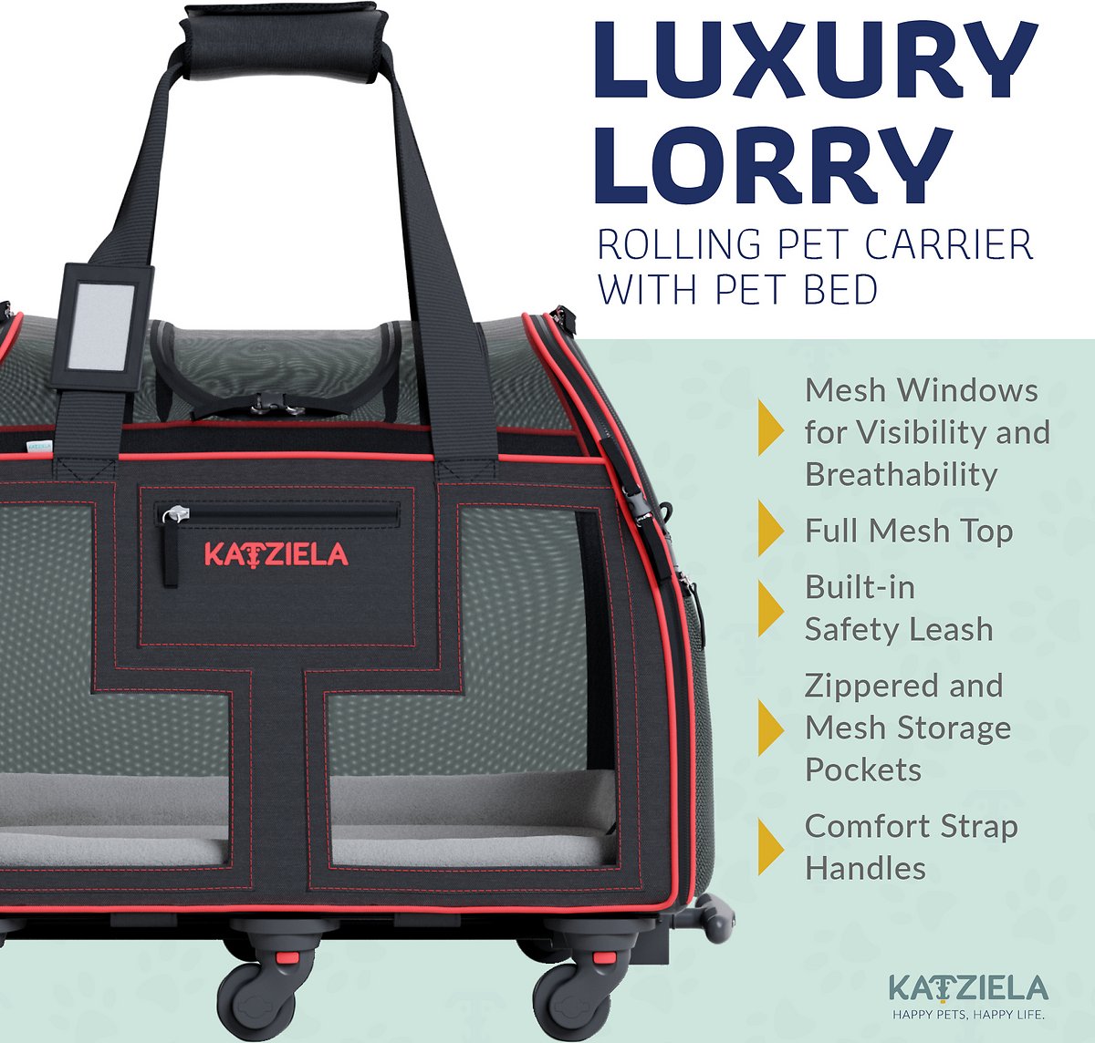 Katziela Rolling Pet Carrier Airline Approved - Pet Carrier with Wheels - Luxury Lorry - Deluxe TSA Approved Cat Carrier with Wheels - Small Airline Approved Dog Carrier Trolley - Plane Carry On Bag