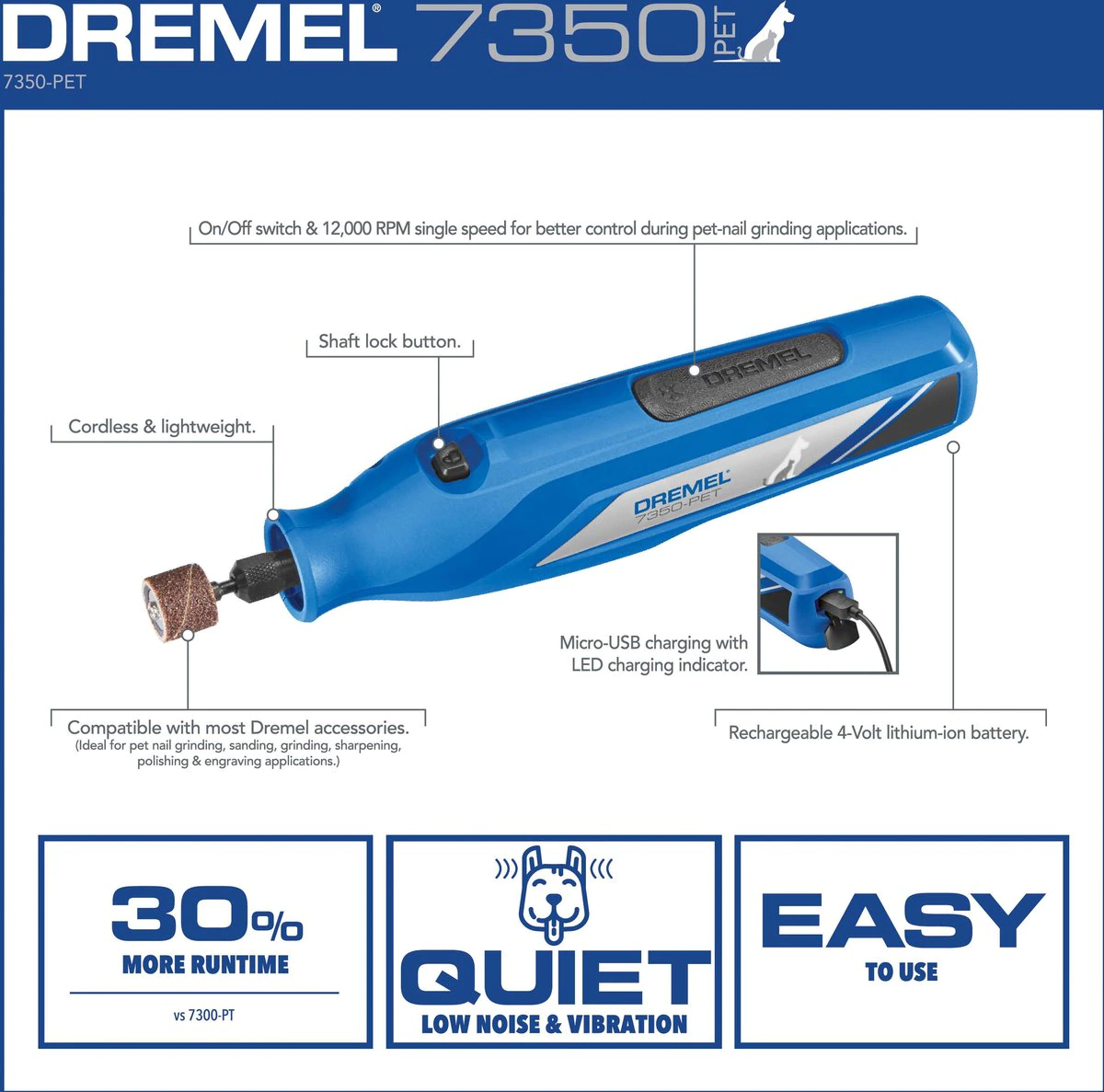 Bundle: Dremel 7350-PT Cordless Cat & Dog Rotary Nail Grinder Kit + Dremel Grooming Bands for the 7350-PT &7300-PT Nail Grinder