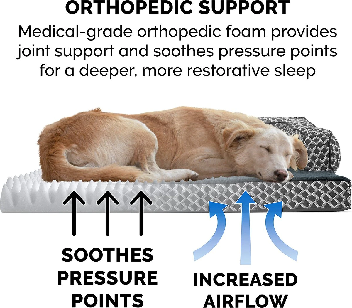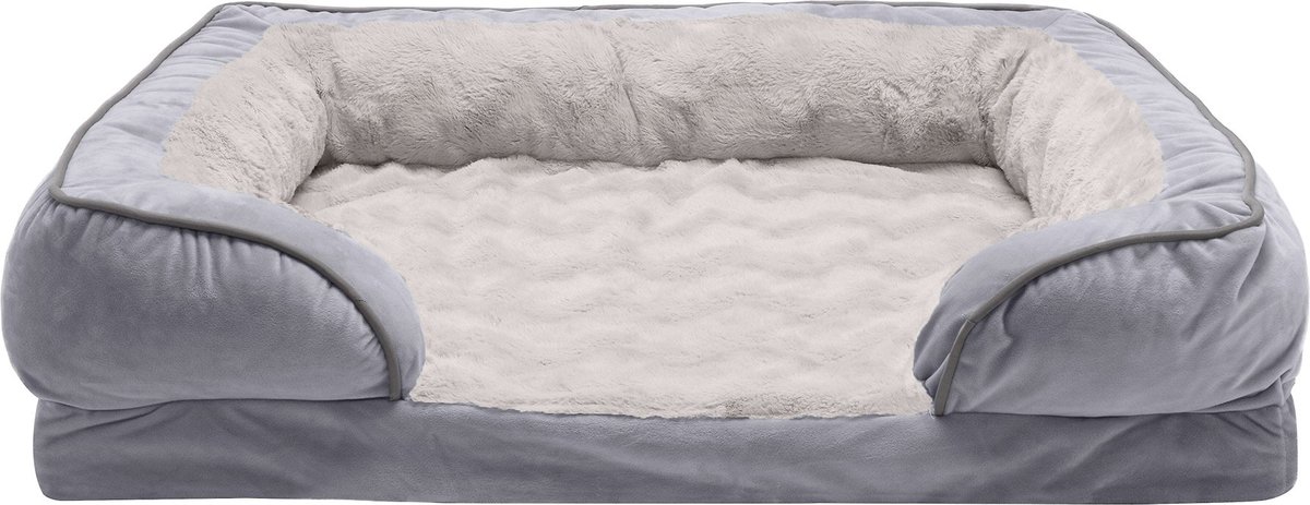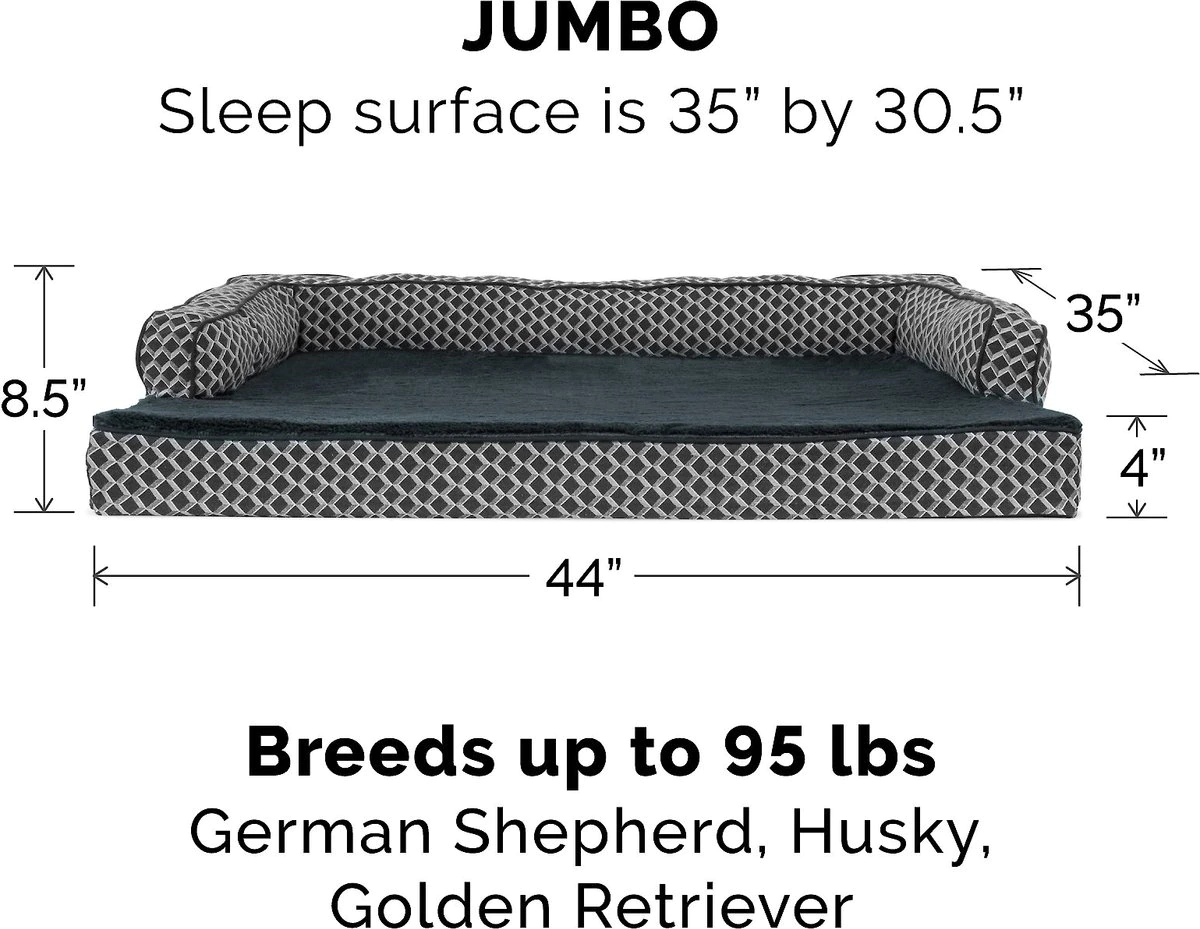 FurHaven Comfy Couch Orthopedic Bolster Dog Bed w/Removable Cover - Diamond Gray. Jumbo