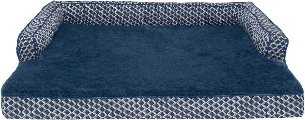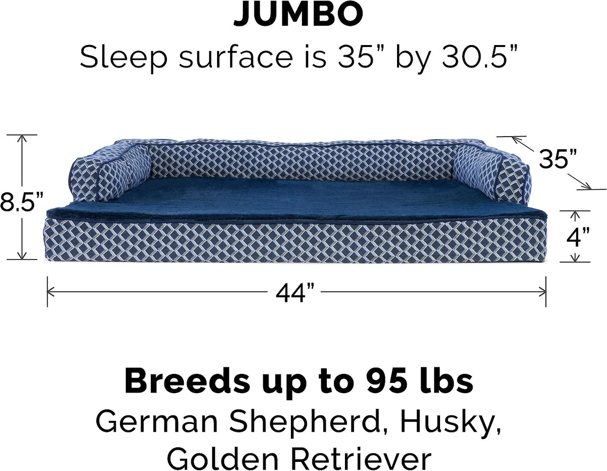 FurHaven Comfy Couch Orthopedic Bolster Dog Bed w/Removable Cover - Diamond Blue. Jumbo
