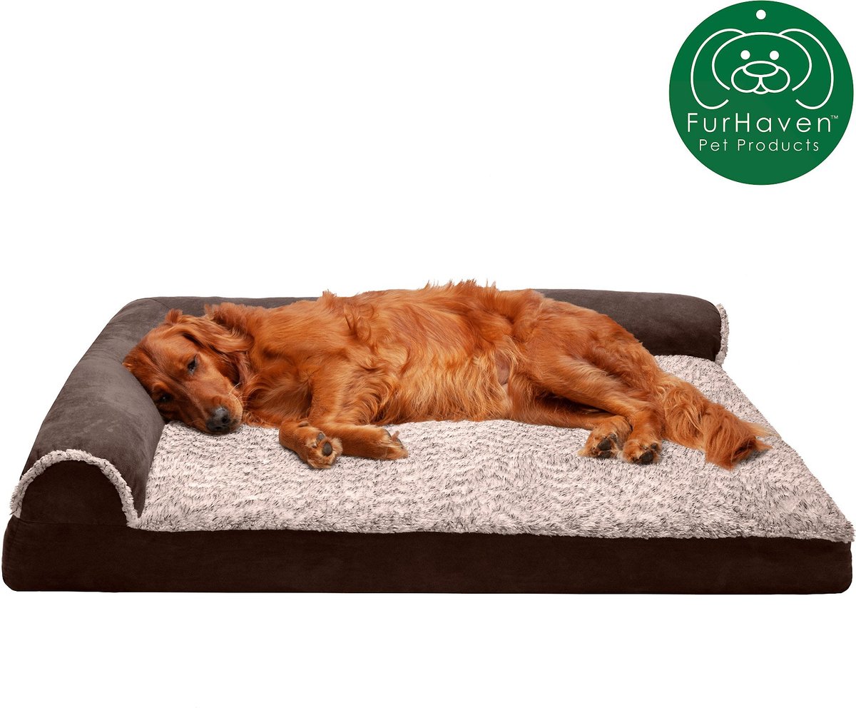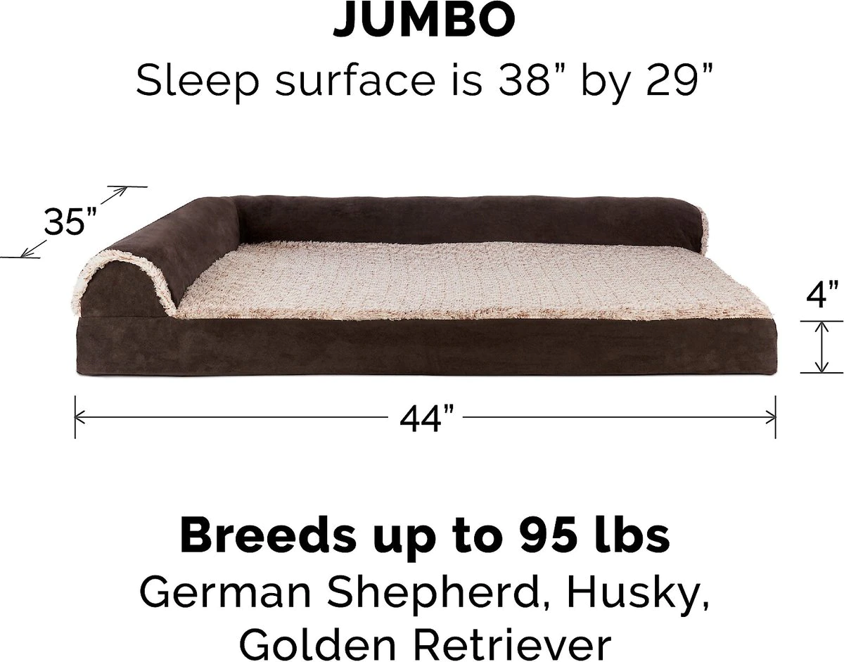 FurHaven Two-Tone Deluxe Chaise Memory Top Cat & Dog Bed w/Removable Cover - Espresso. Jumbo