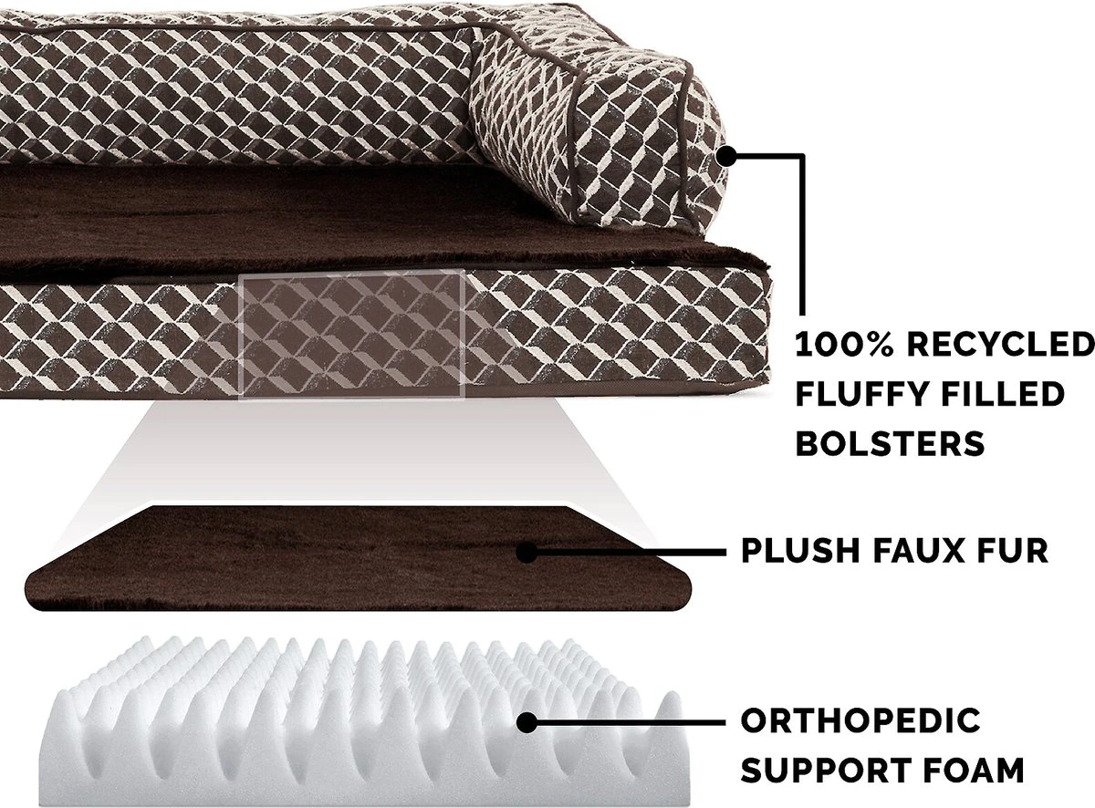 FurHaven Comfy Couch Orthopedic Bolster Dog Bed w/Removable Cover - Diamond Brown. Jumbo