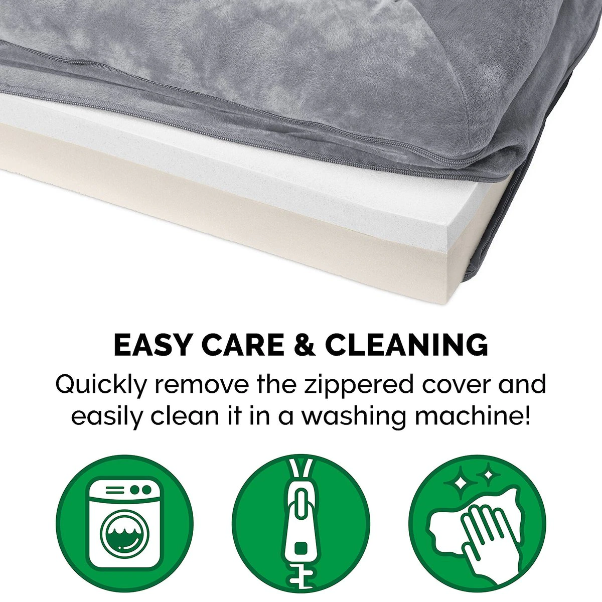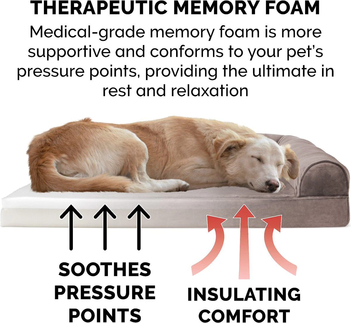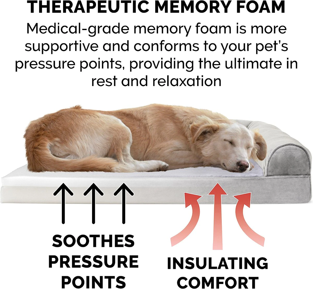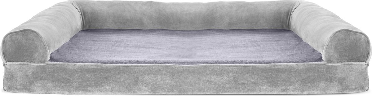 FurHaven Faux Fur Memory Top Bolster Dog Bed w/Removable Cover - Smoke Gray. Jumbo (X-Large)