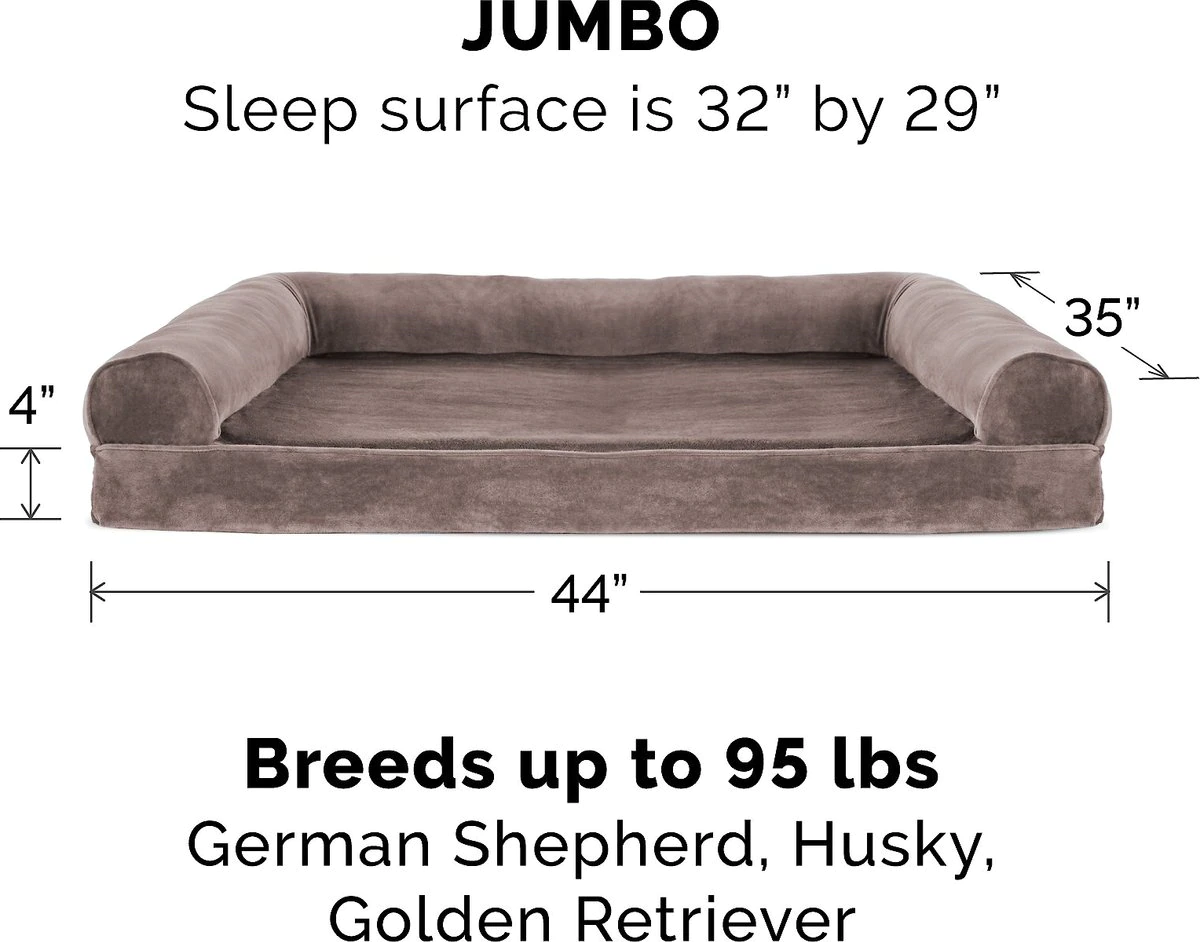 FurHaven Faux Fur Memory Top Bolster Dog Bed w/Removable Cover - Driftwood Brown. Jumbo (X-Large)