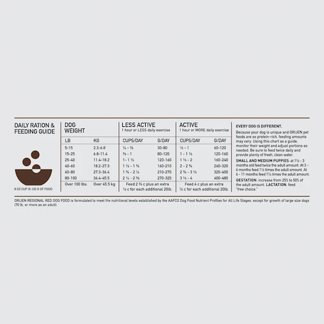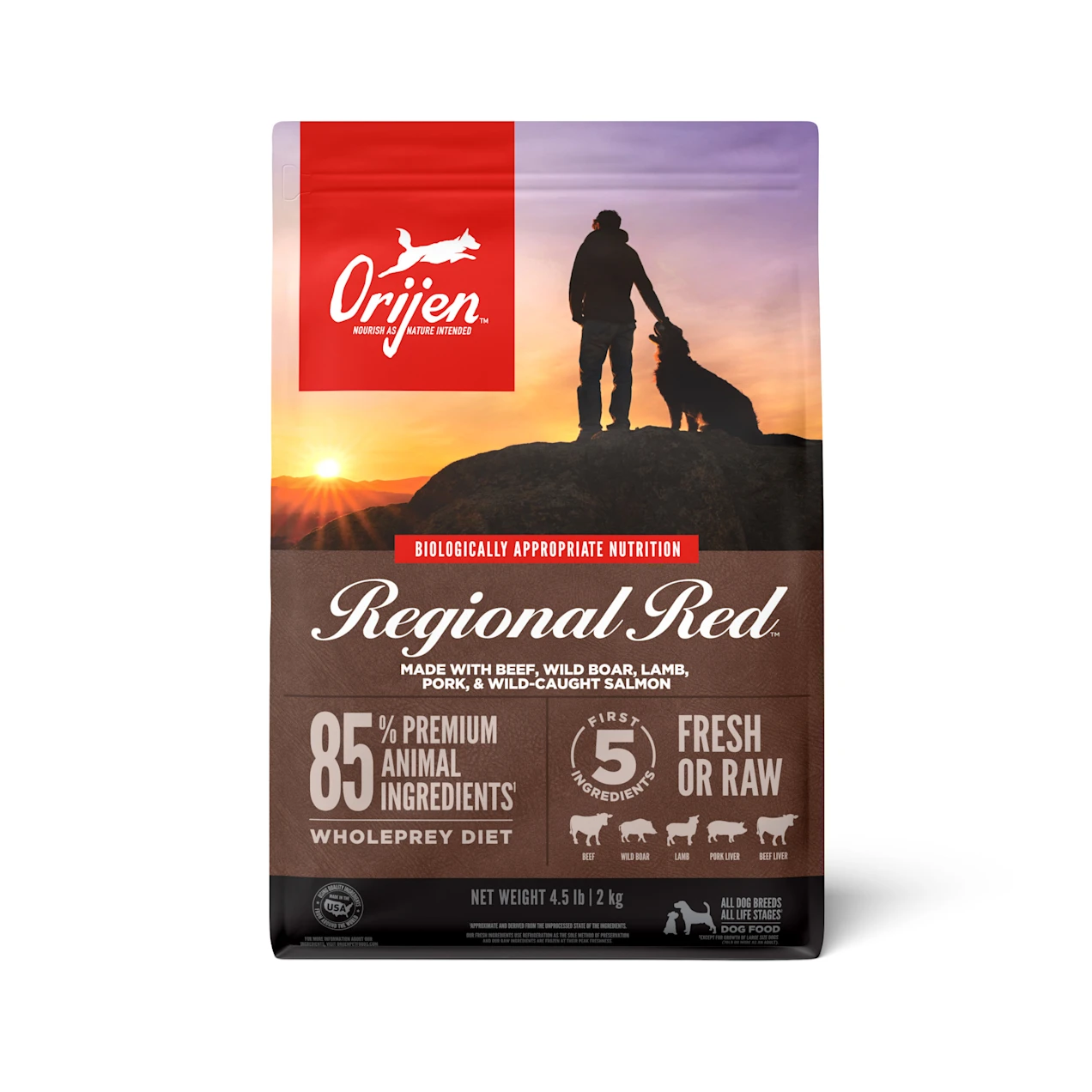 ORIJEN Regional Red Grain Free & Poultry Free High Protein Fresh & Raw Animal Ingredients Dry Dog Food. 4.5 lbs – 25 lbs