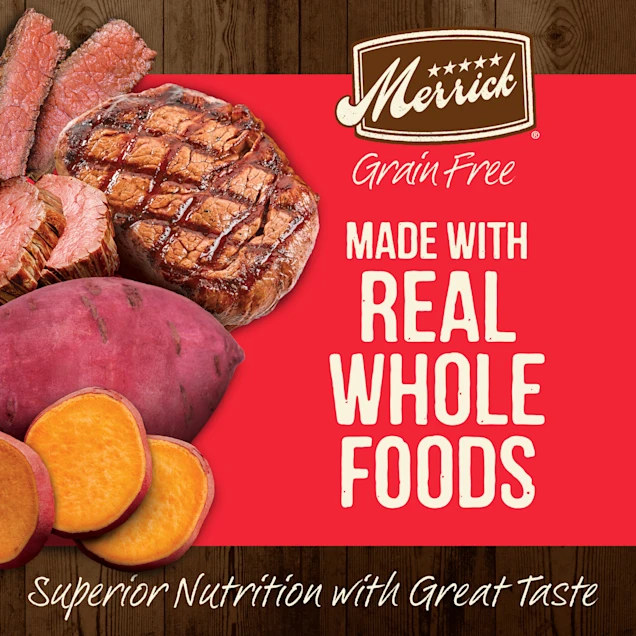 Merrick Grain Free Real Bison. Beef & Sweet Potato Recipe Dry Dog Food. 10 lbs.