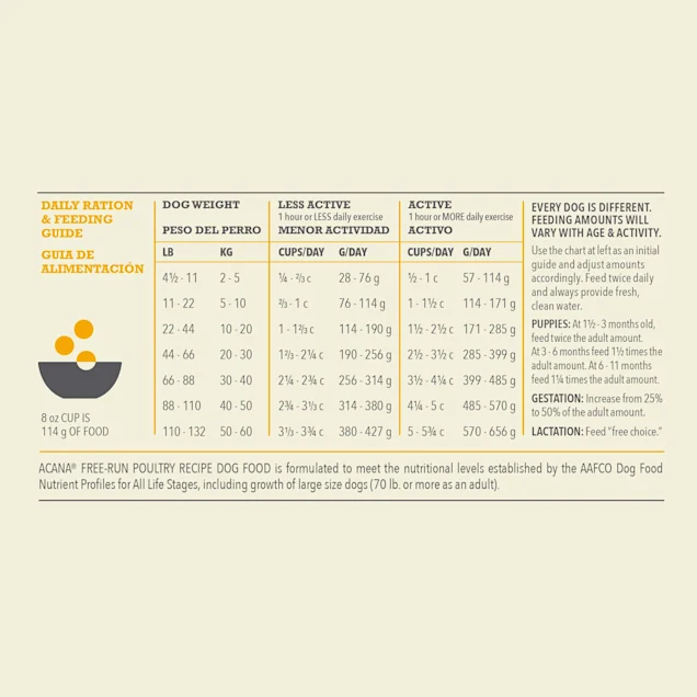 ACANA Grain-Free Free Run Poultry Chicken and Turkey and Cage-free Eggs Dry Dog Food. 25 lbs.