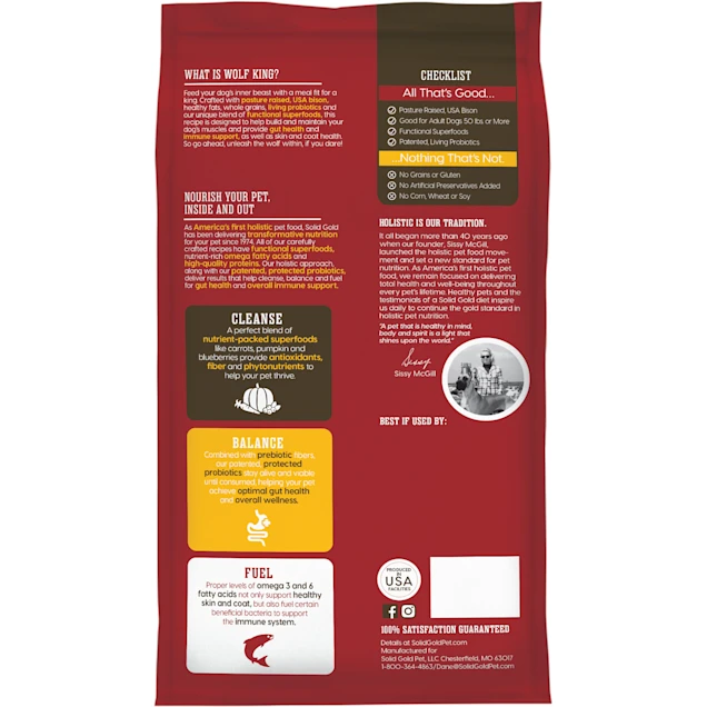 Solid Gold Wolf King Bison. Brown Rice & Sweet Potatoes Adult Dog Food. 24 lbs.