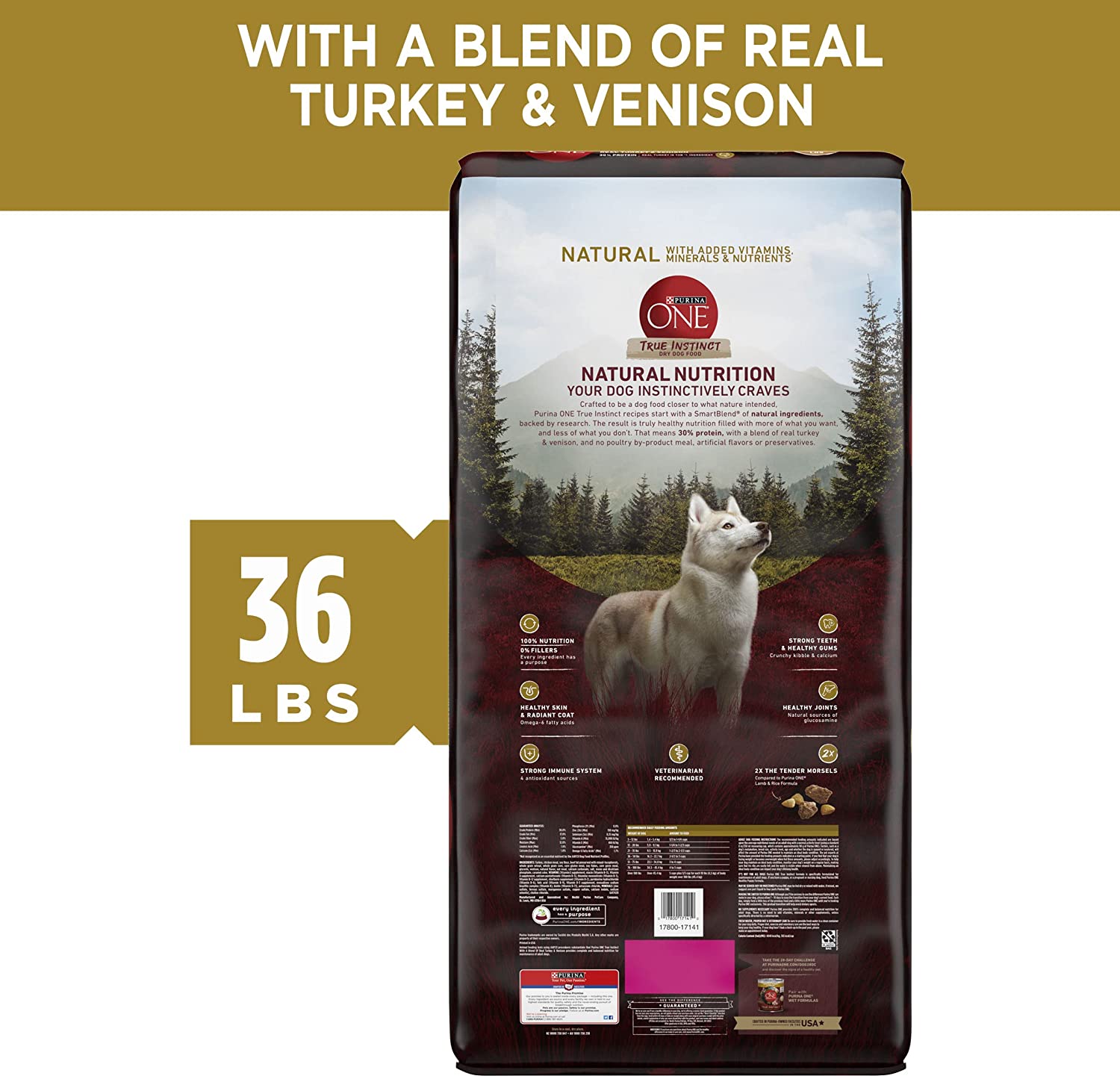 Purina ONE High Protein Natural Dry Dog Food. True Instinct With Real Turkey & Venison - 36 lb. Bag