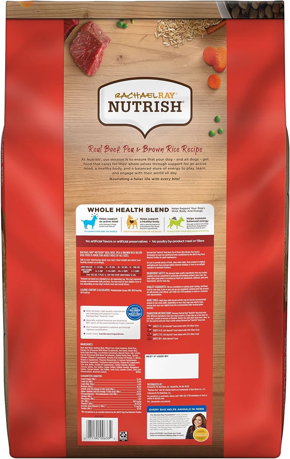 Rachael Ray Nutrish Natural Real Beef. Pea & Brown Rice Recipe Dry Dog Food. 28 lbs.