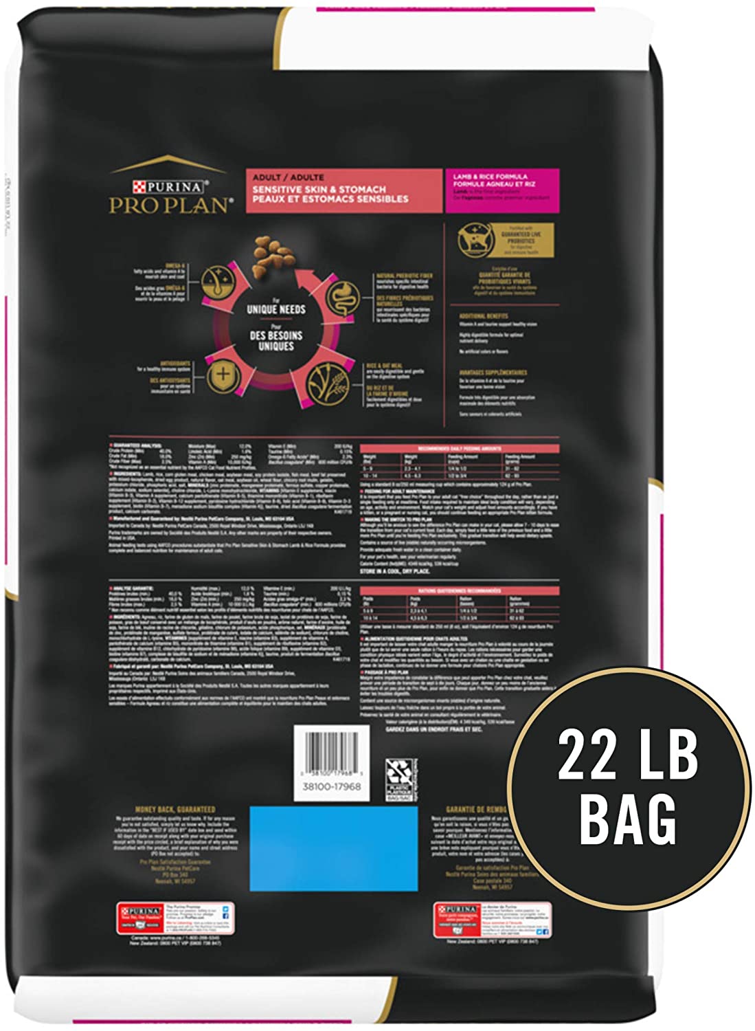 Purina Pro Plan Sensitive Skin and Stomach Cat Food. Lamb and Rice Formula - 22 lb. Bag