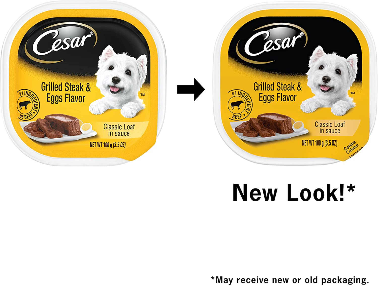 CESAR Soft Wet Dog Food Classic Loaf in Sauce Grilled Steak and Eggs Flavor. 3.5 oz. Easy Peel Trays Pack of 24