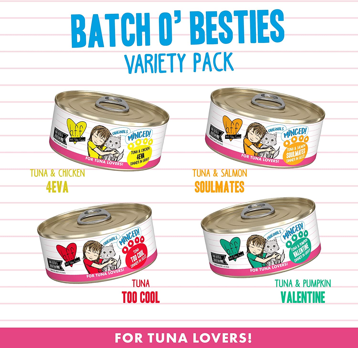 Weruva Best Feline Friend (B.F.F.). Batch ‘O Besties Variety Pack. Wet Cat Food by Weruva. 5.5oz Can (Pack of 8)