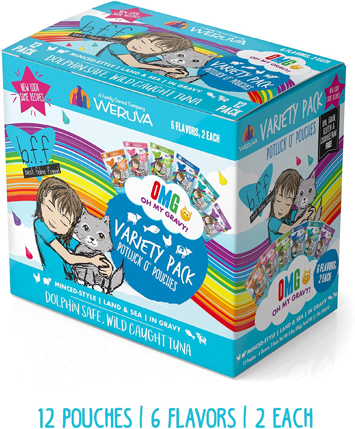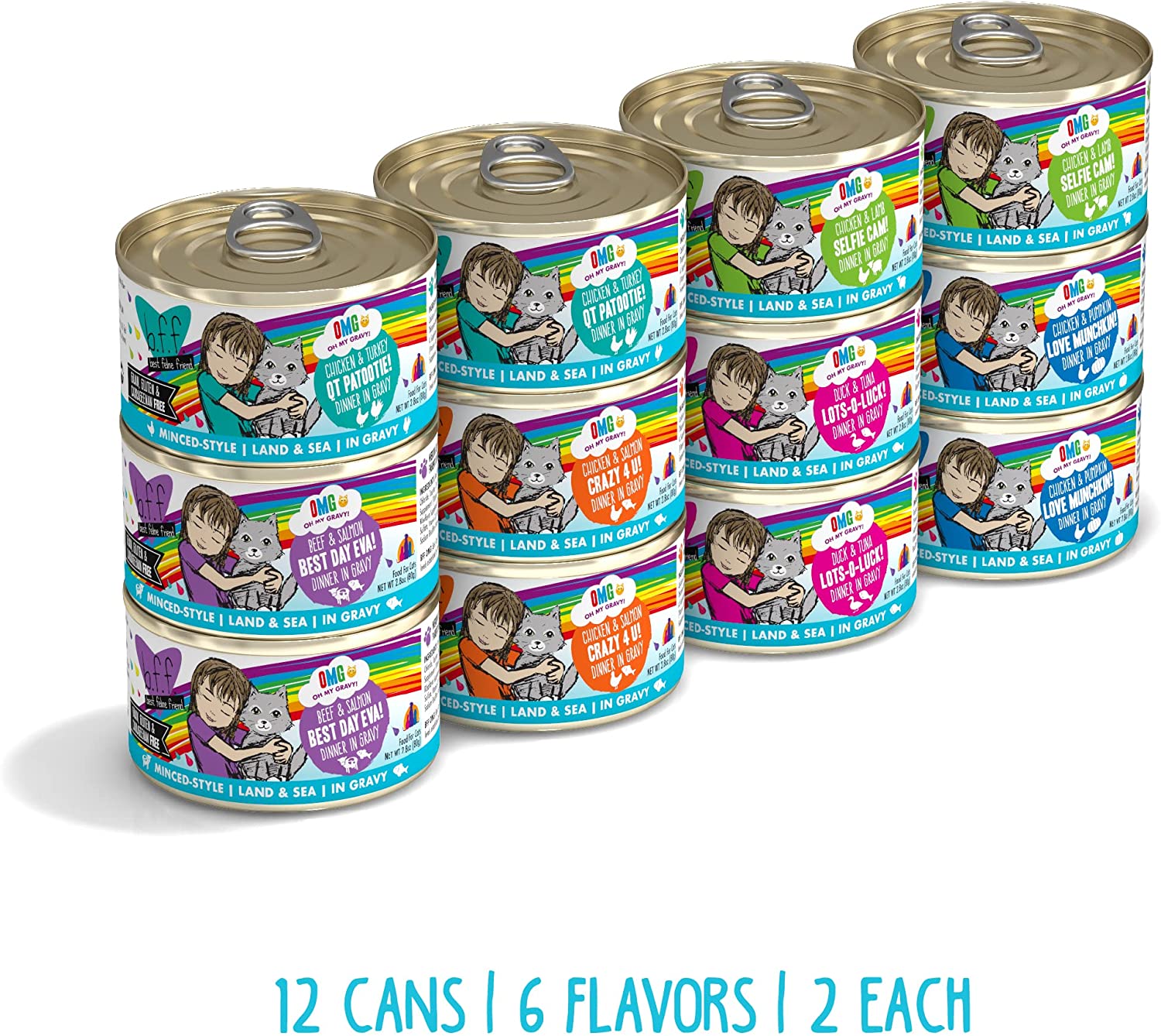 Weruva B.F.F. Omg - Best Feline Friend Oh My Gravy!. Variety Pack. Rainbow Road. Wet Cat Food By. 2.8Oz Cans (Pack Of 12)