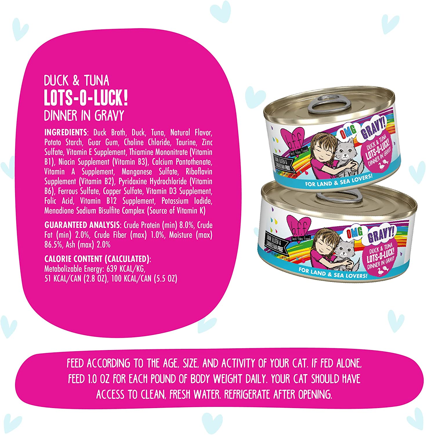 Weruva B.F.F. OMG - Best Feline Friend Oh My Gravy!. Lots-O-Luck! with Duck & Tuna in Gravy Cat Food. 5.5oz Can (Pack of 8)