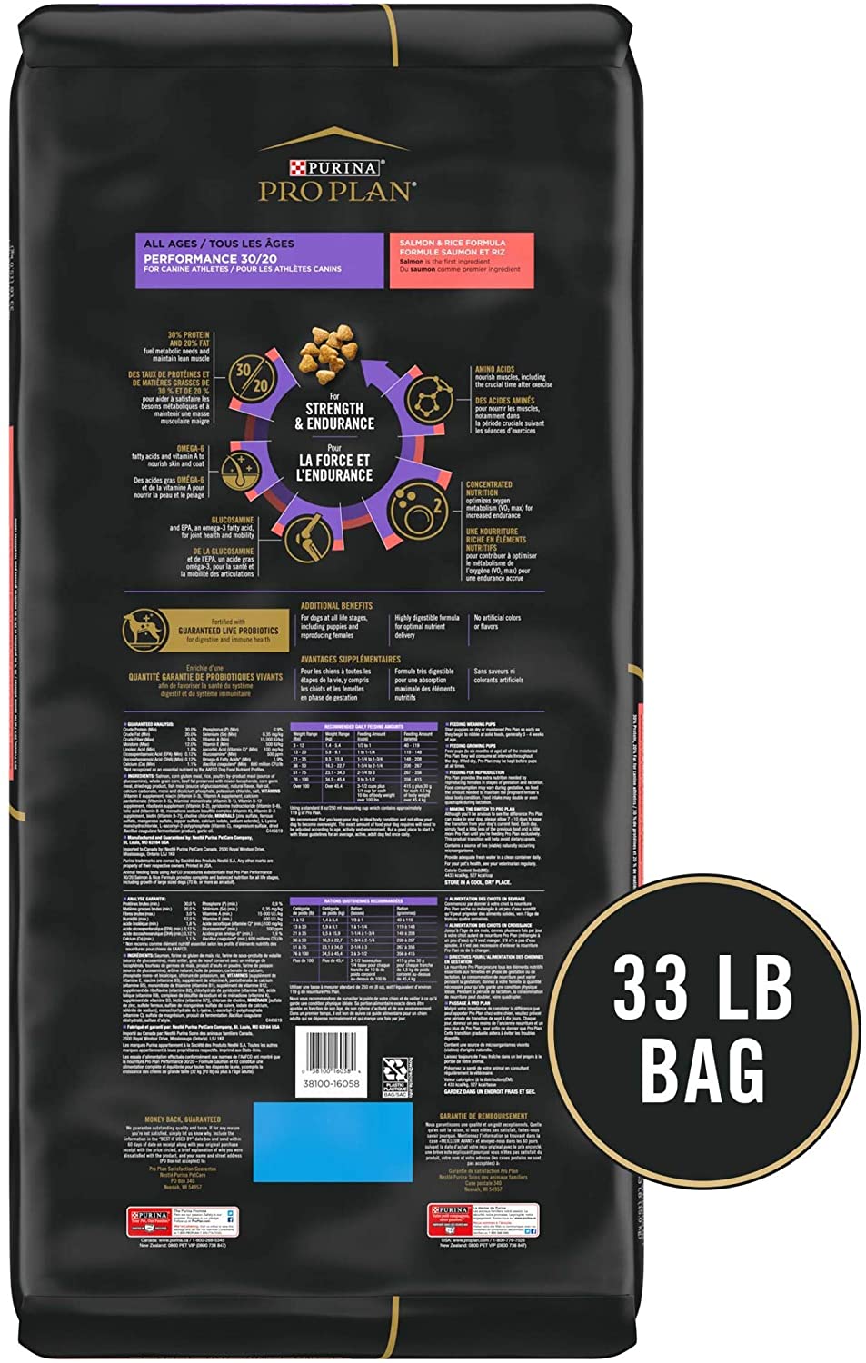Purina Pro Plan High Energy. High Protein Dry Dog Food. SPORT 30/20 Salmon & Rice Formula - 33 lb. Bag