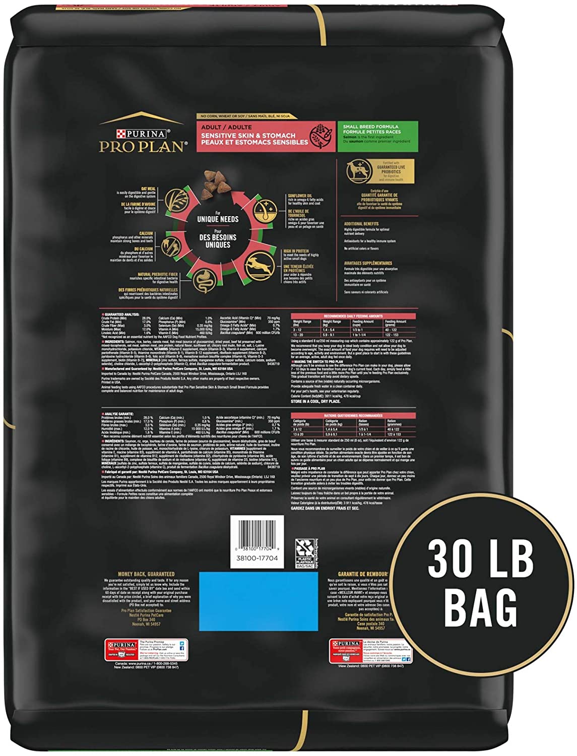 Purina Pro Plan Sensitive Skin and Sensitive Stomach Small Breed Dog Food. Salmon & Rice Formula - 30 lb. Bag