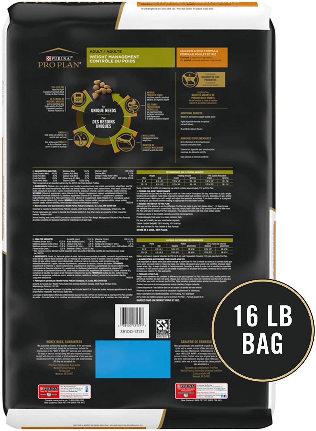 Purina Pro Plan Weight Control Adult Dry Cat Food. Chicken and Rice Formula - 16 lb. Bag