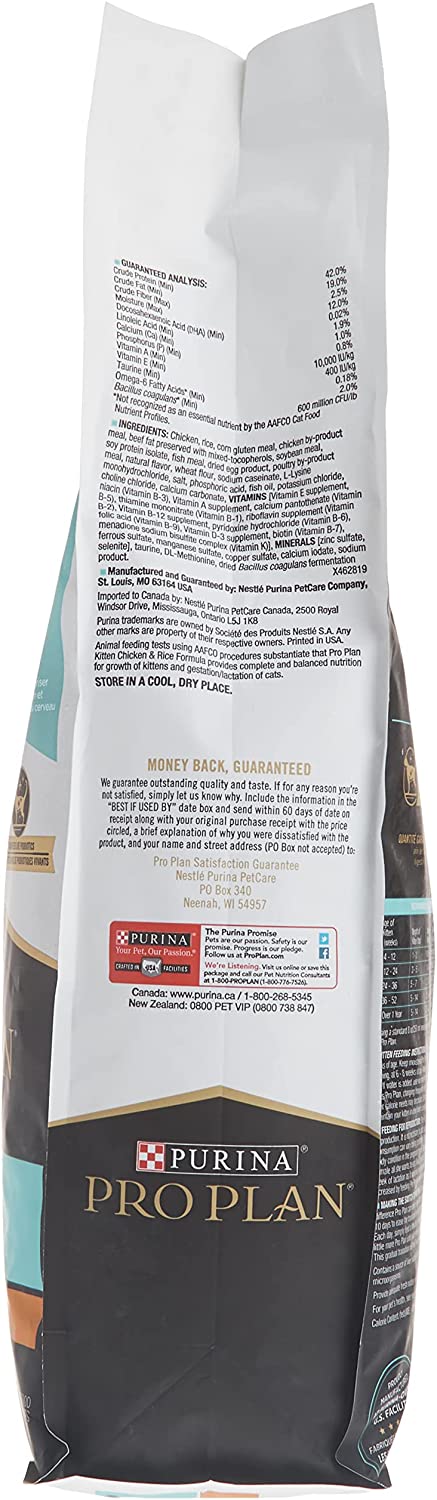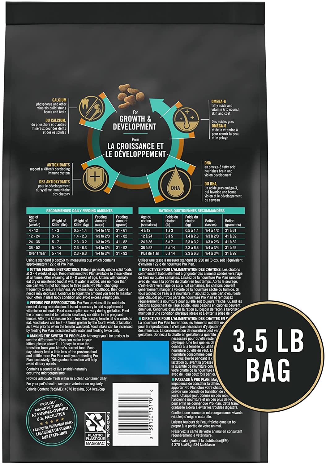 Purina Pro Plan With Probiotics. High Protein Dry Kitten Food. Chicken and Rice Formula - 3.5 lb. Bag