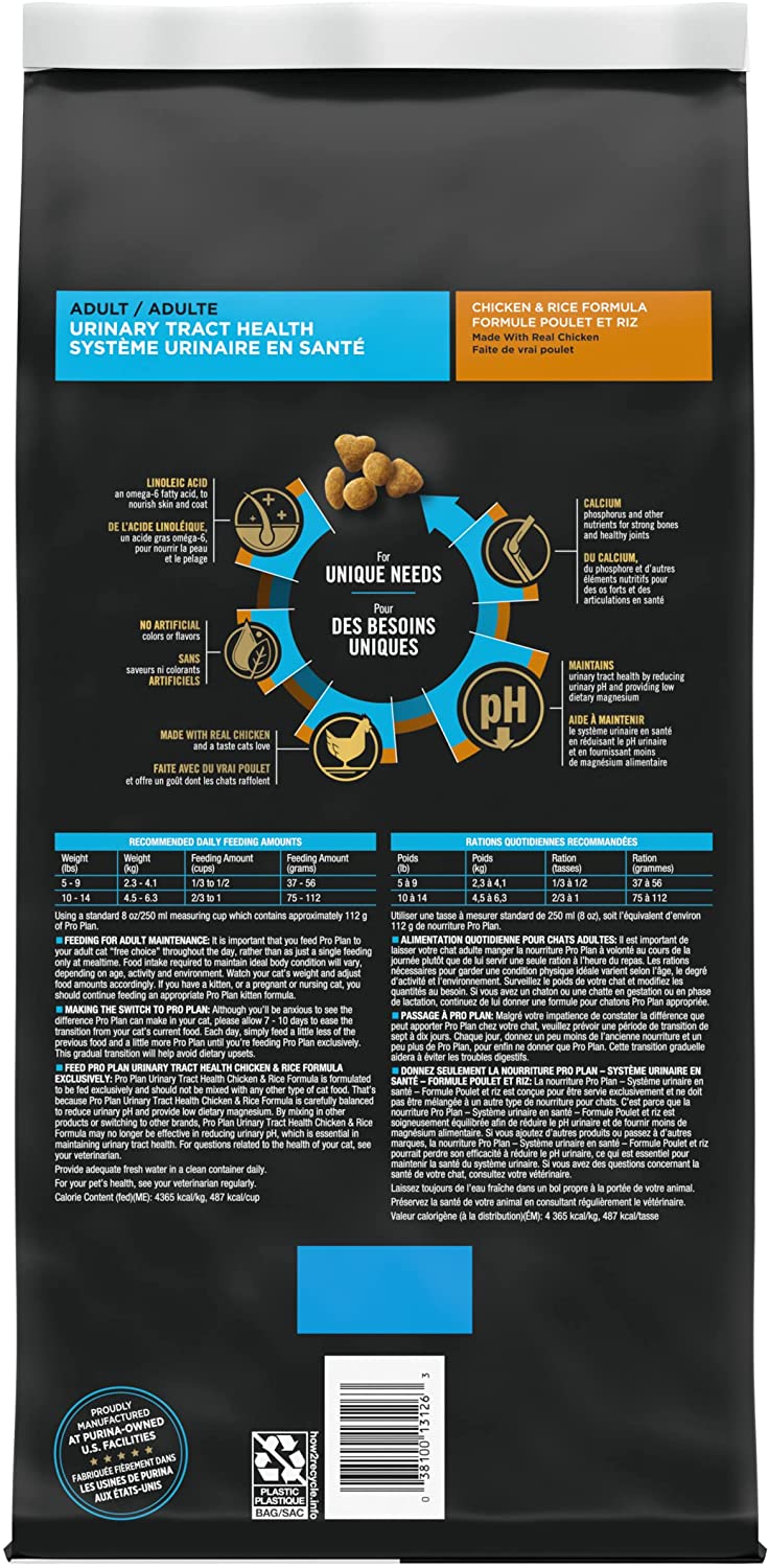 Purina Pro Plan Urinary Tract Dry Cat Food. Chicken and Rice Formula - 22 lb. Bag